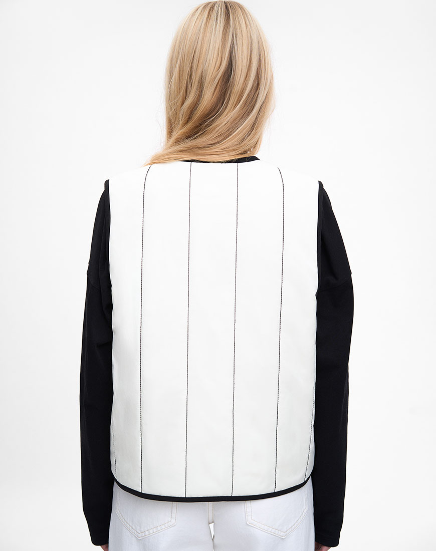 Доставка протягом 2-5 робочих днівМолочний стьобаний жилет із плащової тканини.