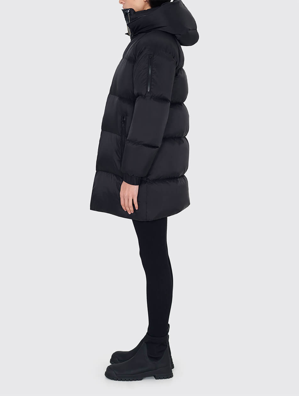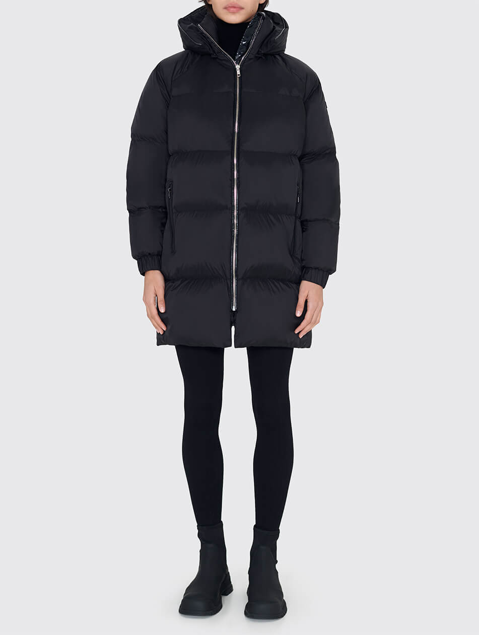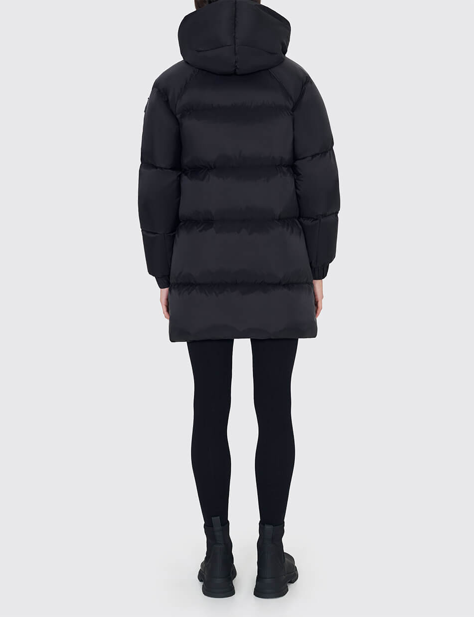Елегантний пуховик “Midi” відрізняється від базової постійної моделі MARCHI “Bomber” довжиною. Завдяки цьому куртка має жіночний і благородний вигляд. Основною перевагою цього пуховика є плащівка з шаром мембрани. Така плащівка не промокає і вітрозахисна. Деякі деталі, що прикрашають пуховик, не помітні й елегантні. Тонкі канти і металеві аксесуари. Капюшон не відстібається. Є куліса для регулювання капюшона. На підкладці пуховика є потайна кишеня. Ще одна важлива деталь пуховика – прихований клапан, який фіксується на стегнах і оберігає від вітру. Манжети еластичні. Додаткова кишеня на рукаві.