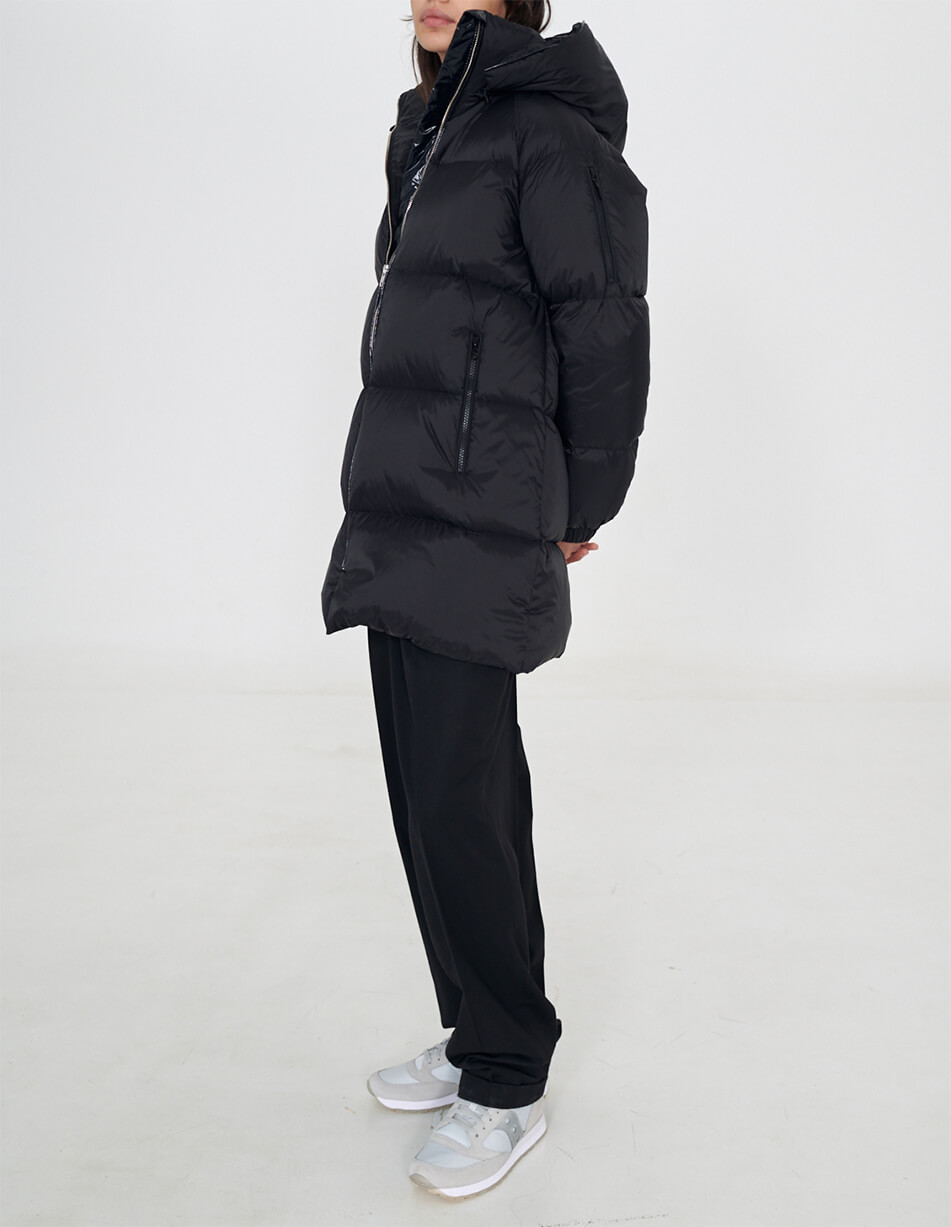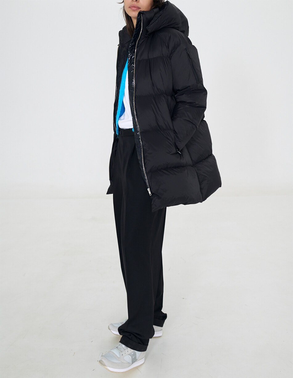 Інформація про модель: зріст 175 см. Об’єм грудей 77 см. Об’єм талії 58 см. Об’єм стегон 88 см. На моделі пуховик у розмірі S.