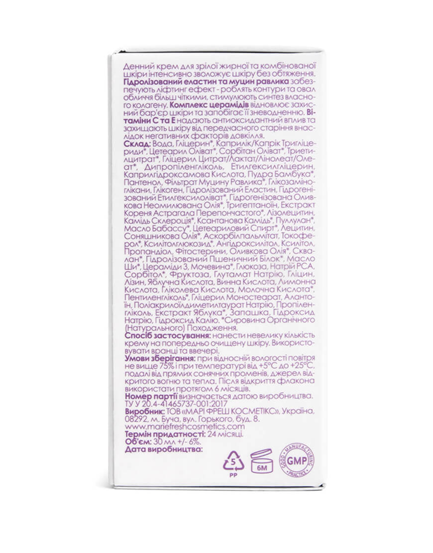 Денний крем ліфтинг Marie Fresh для зрілої жирної та комбінованої шкіри 30 мл