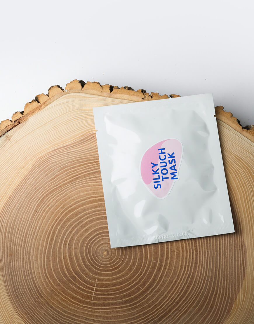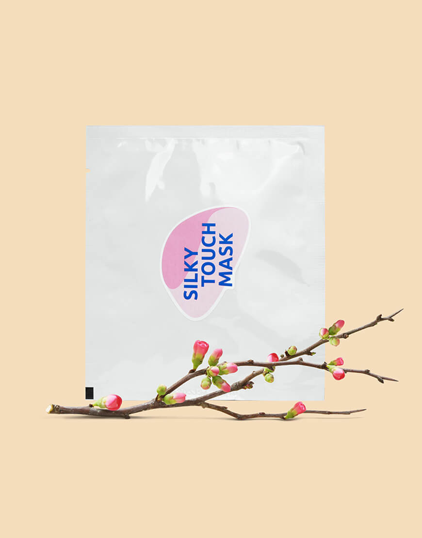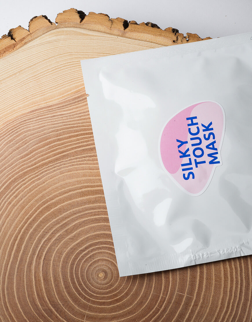 Маска Silky touch виготовлена із повністю натурального матеріалу – волокон целюлози. Забезпечує екстремальне зволоження, м’якість та шовковистість шкіри відразу після використання. Гіалуронова кислота розгладжує дрібні зморшки, забезпечує пружність та еластичність шкіри. Комплекс полісахаридів інтенсивно зволожує шкіру та зменшує лущення.