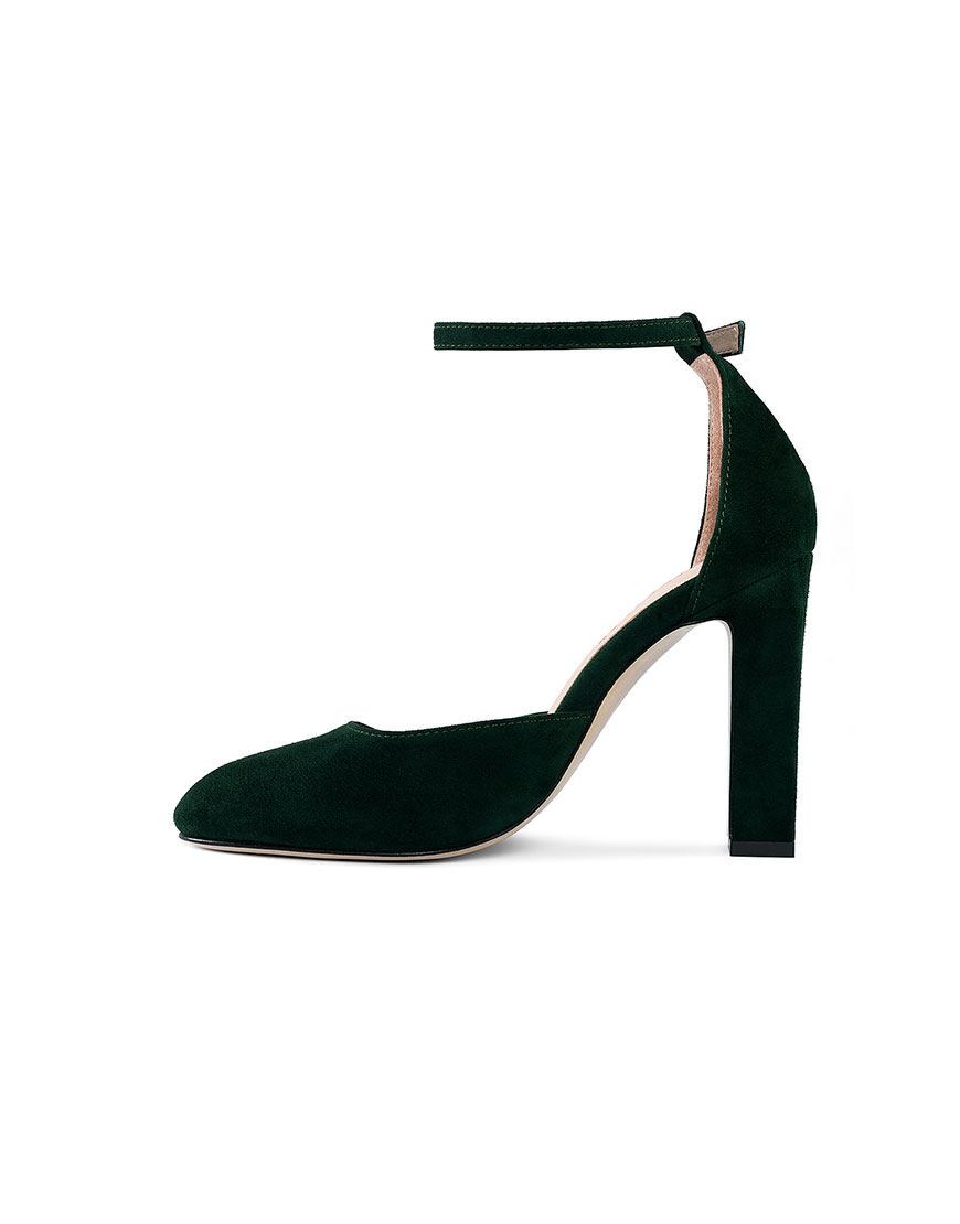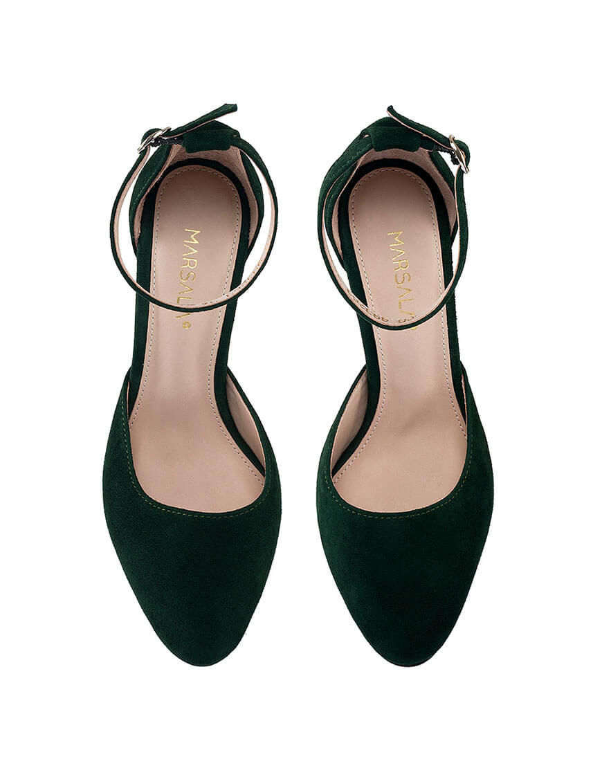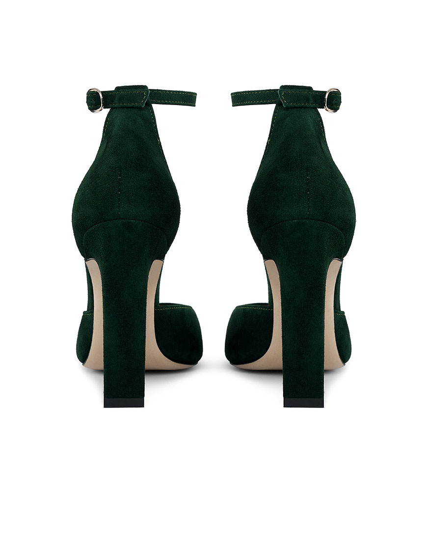 Туфлі замшеві темно-зелені каблук 10 см, навколо щиколотки ремінець. Дуже зручна колодка!
