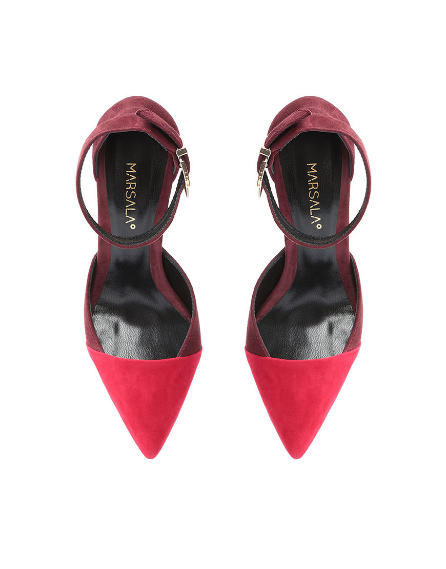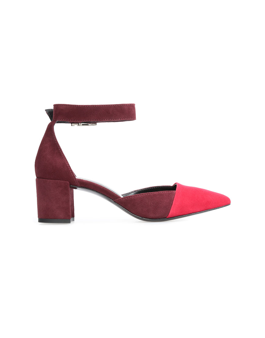 Замшеві туфлі Andorra Bordeaux з контрастним носком. Висота каблука – 6 см.