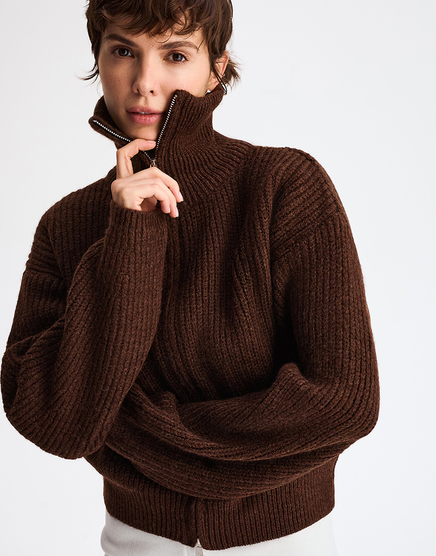 М’яка фактурна в’язка огортає, але не обтяжує. Високий комір додає відчуття захищеності та комфорту, коли хочеться трохи тиші серед руху міста.