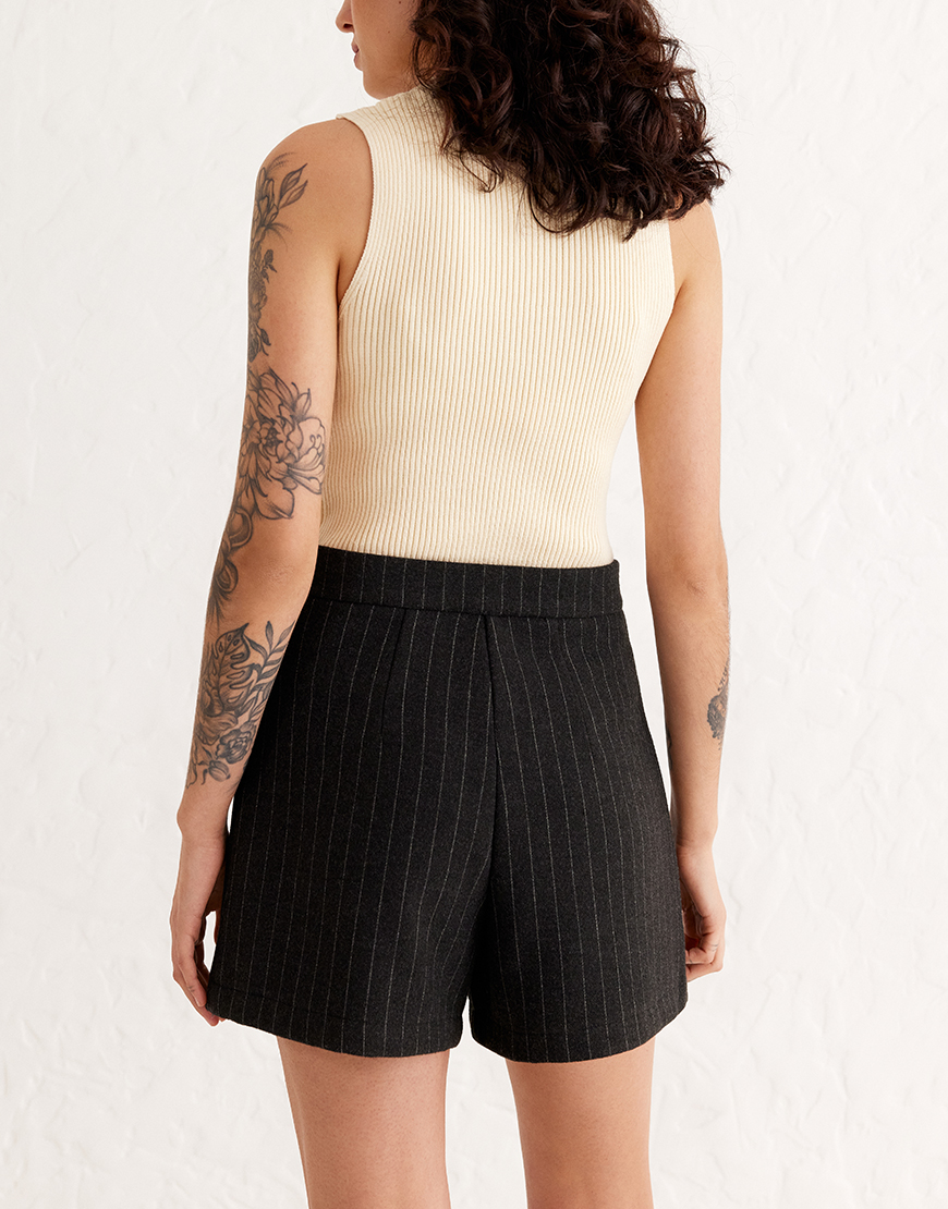 Доставка впродовж 1-2 робочих днівСпідниця-шорти з високою талією, без кишень. Класичний чорний колір із витонченим смугастим принтом додає елегантності.