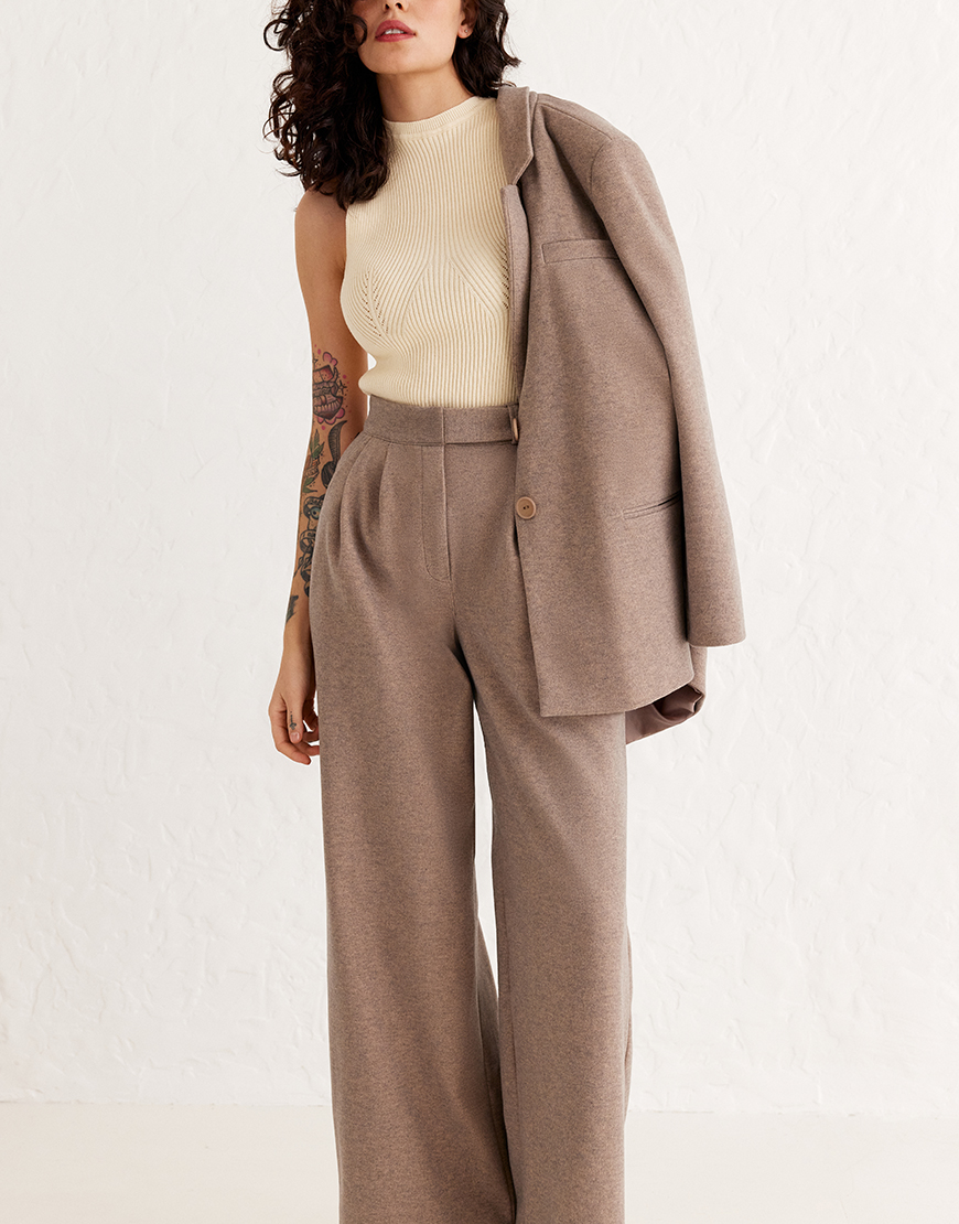 Параметри моделі і розмір на ній: 84/64/91, зріст 174. Піджак XS/S, брюки XS