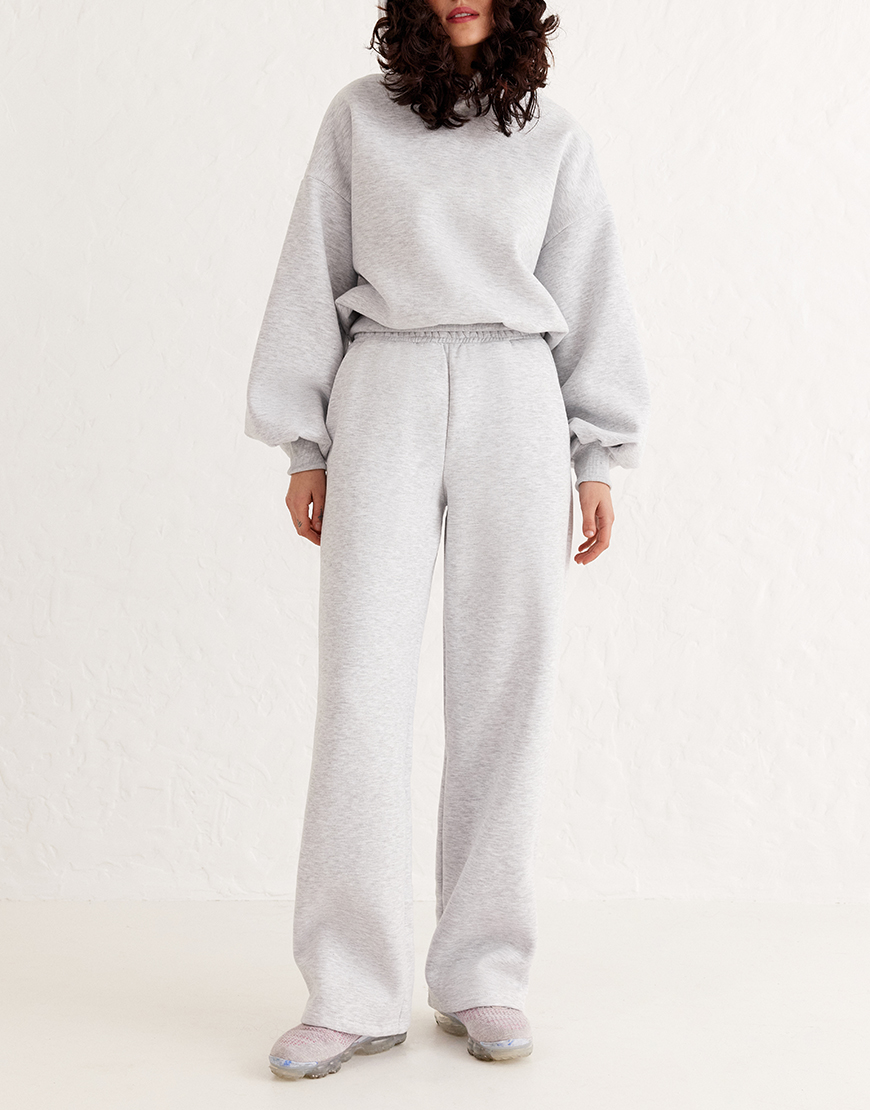 Доставка впродовж 1-2 робочих днівШтани: широкого фасону з високою посадкою, що забезпечує зручність та стильний вигляд. Оснащені глибокими кишенями на прихованих зав’язках, що дозволяє регулювати посадку та додає функціональності. Матеріал забезпечує комфорт та зручність протягом дня, а світло-сірий відтінок додає елегантності та мінімалізму. Ідеальний вибір для прогулянок, подорожей або відпочинку вдома.