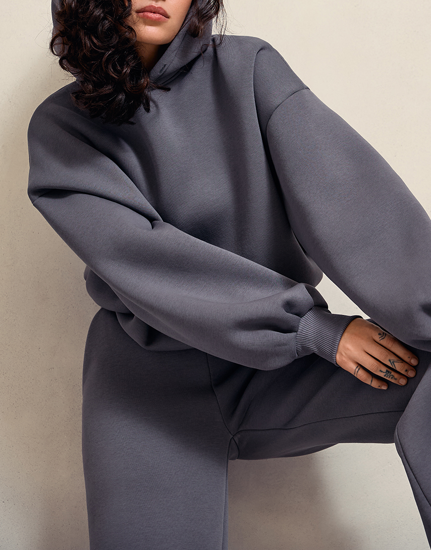 Параметри моделі і розмір на ній: 84/64/91, зріст 174. Худі XS/S, штани XS