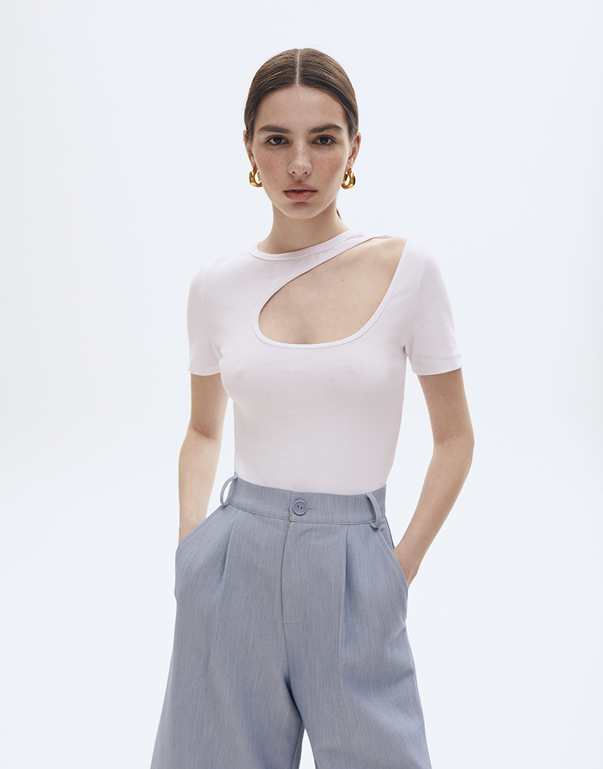 Доставка впродовж 1-2 робочих днівСтильна базова футболка з акцентним асиметричним вирізом, який додає образу сучасності та сміливості. М’який еластичний трикотаж комфортно прилягає до тіла. Ідеально поєднується з джинсами, шортами чи жакетом. Доступна в білому, чорному та зеленому кольорах.
