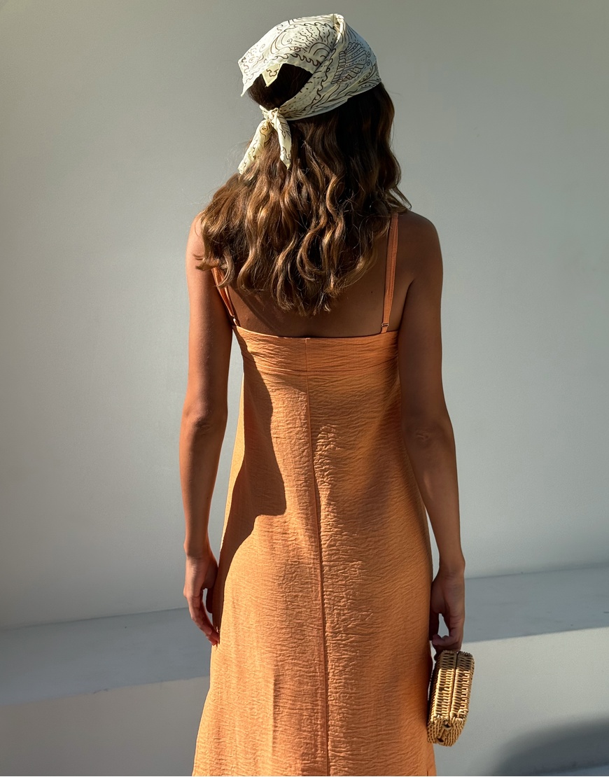 Доставка впродовж 1-2 робочих днівСукня подовженого крою з віскози у моркв’яному відтінку. М’яка, легка й комфортна до тіла. Вільний силует і тонкі бретелі роблять її ідеальною для спекотних днів — жіночна, елегантна та дихаюча.