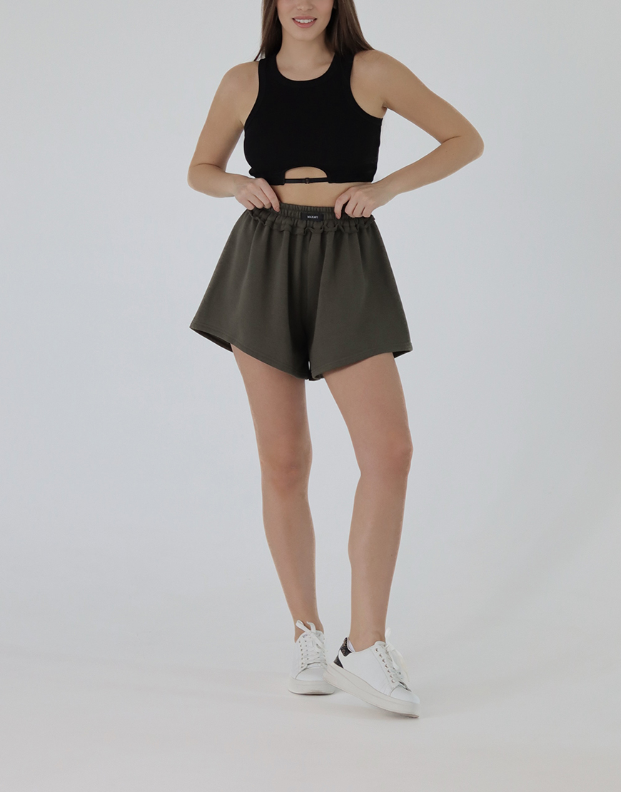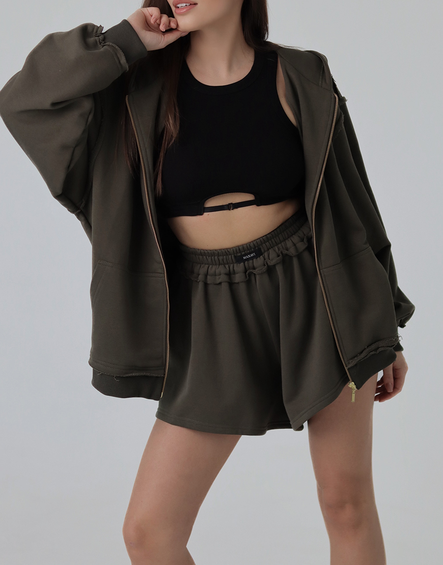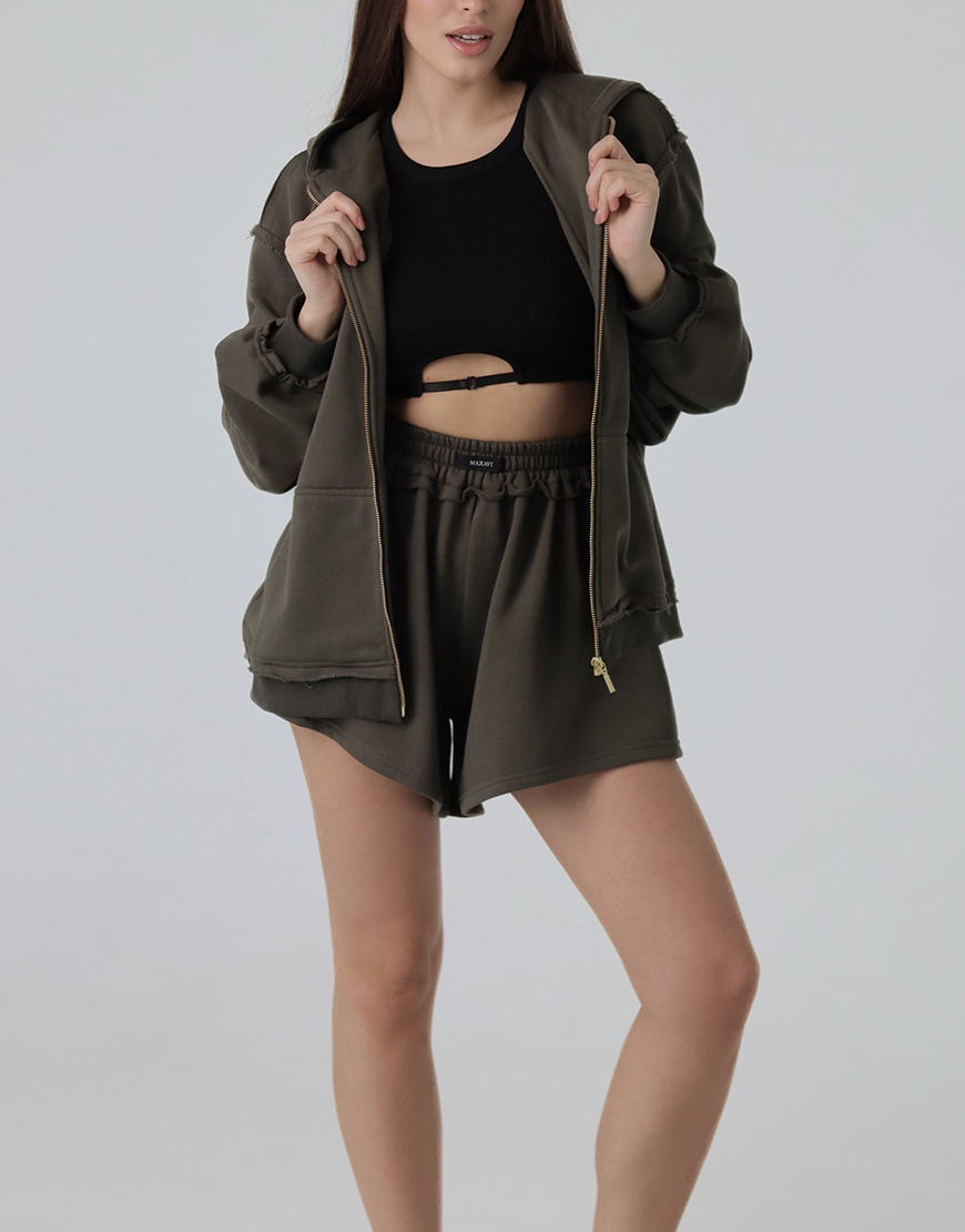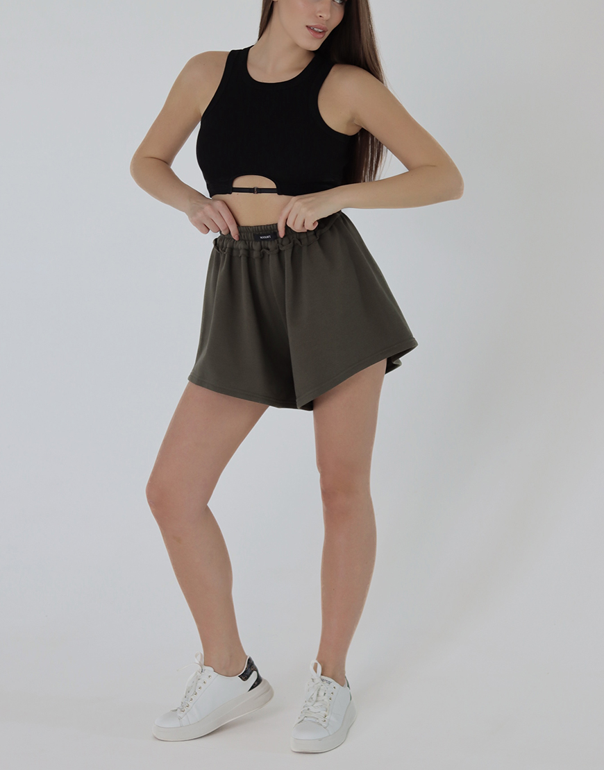 Доставка протягом 2-5 рабочих днівШорти-кльош мають необроблені краї, що додає образу легкості та шарму. Вони легко комбінуються з футболками, світшотами й зіперами цього ж кольору або з речами базових кольорів.