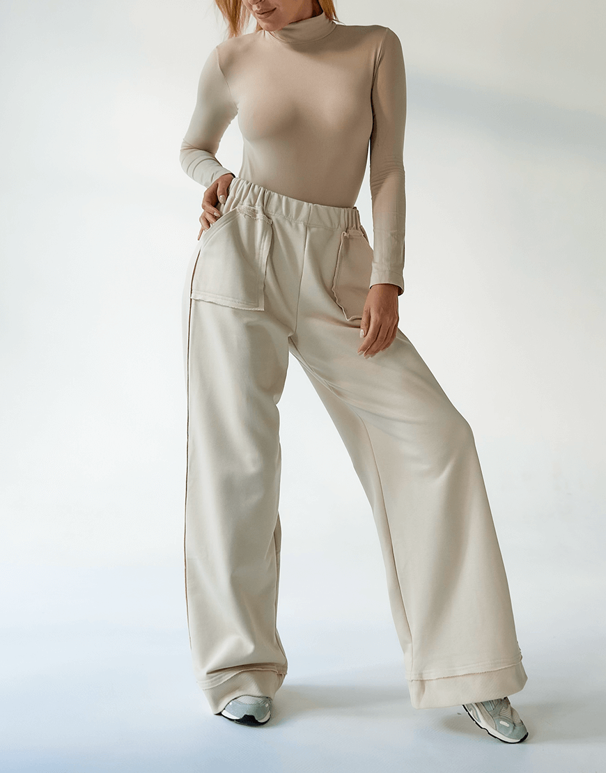 Доставка протягом 2-5 рабочих днівШирокі штани з накладними кишенями вільного крою. Стильні штани зі швами назовні дуже комфортні і з ними можна зібрати безліч образів. Матеріалу властива зминання за рахунок натурального складу, тканина приємна до тіла та пропускає повітря.