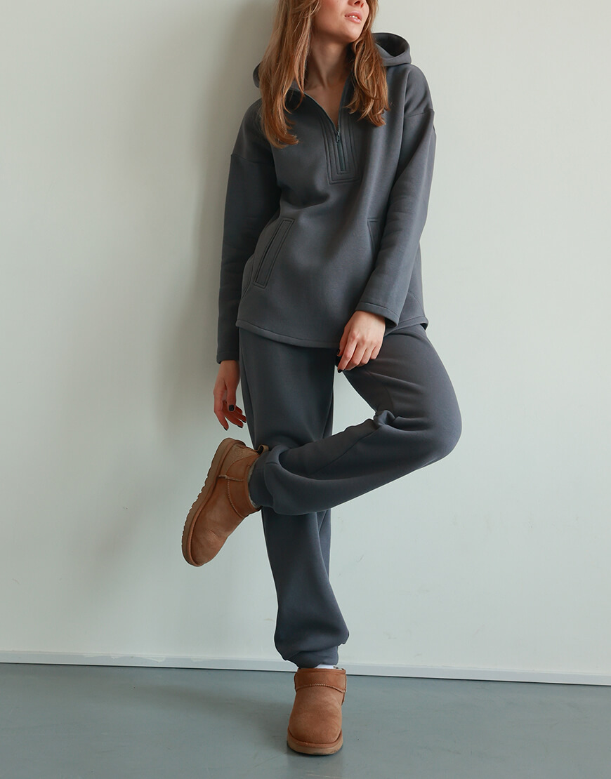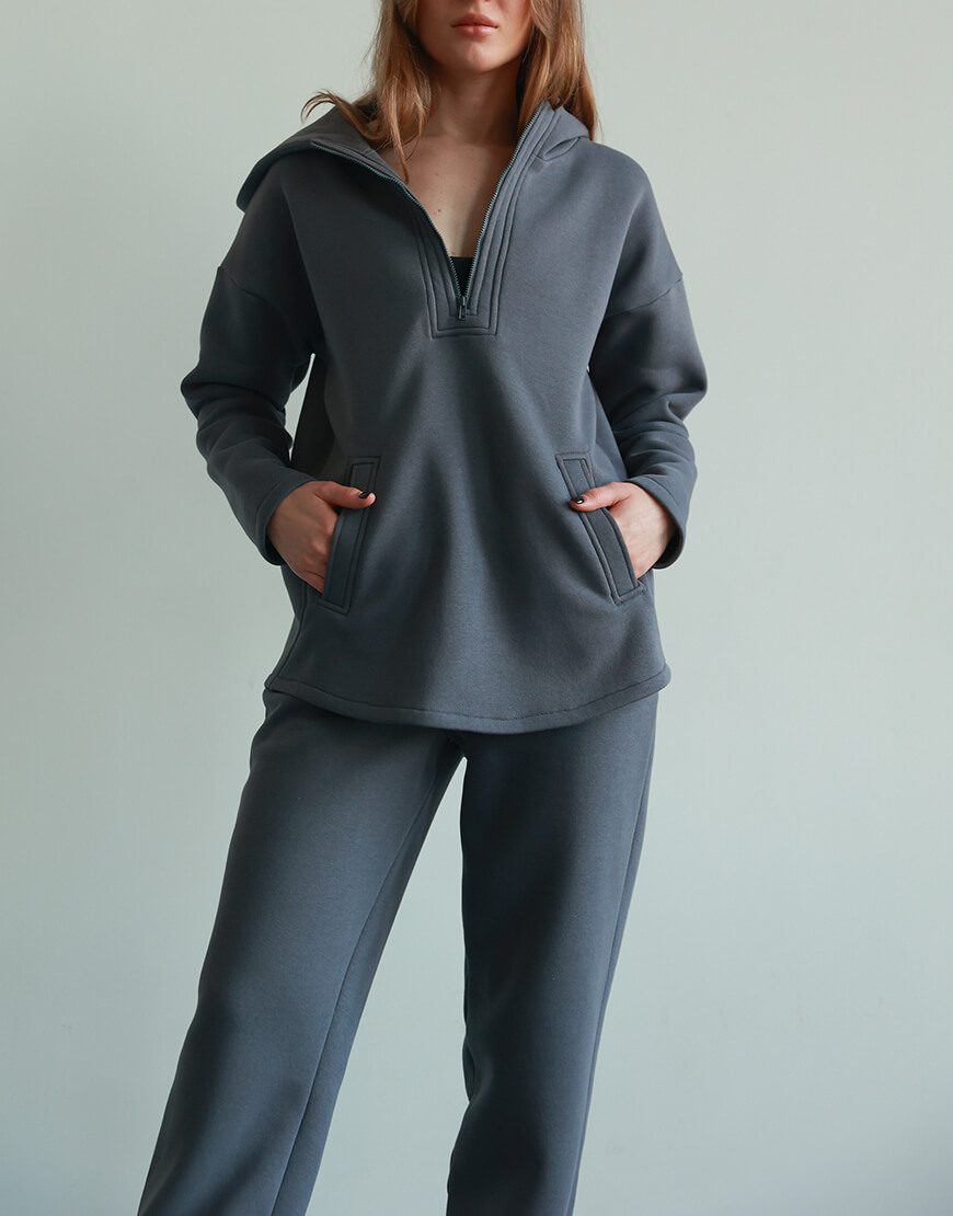 Теплий костюм з натуральної тканини ідеально підходить для прохолодної погоди. Він виготовлений з якісного матеріалу, що забезпечує комфорт і дозволяє шкірі дихати. Особливу увагу приділено деталям — ми використовуємо високоякісну фурнітуру YKK, яка відзначається надійністю і довговічністю. М’яка тканина та продуманий крій гарантують свободу рухів, роблячи цей костюм універсальним вибором як для повсякденного носіння, так і для активного відпочинку.