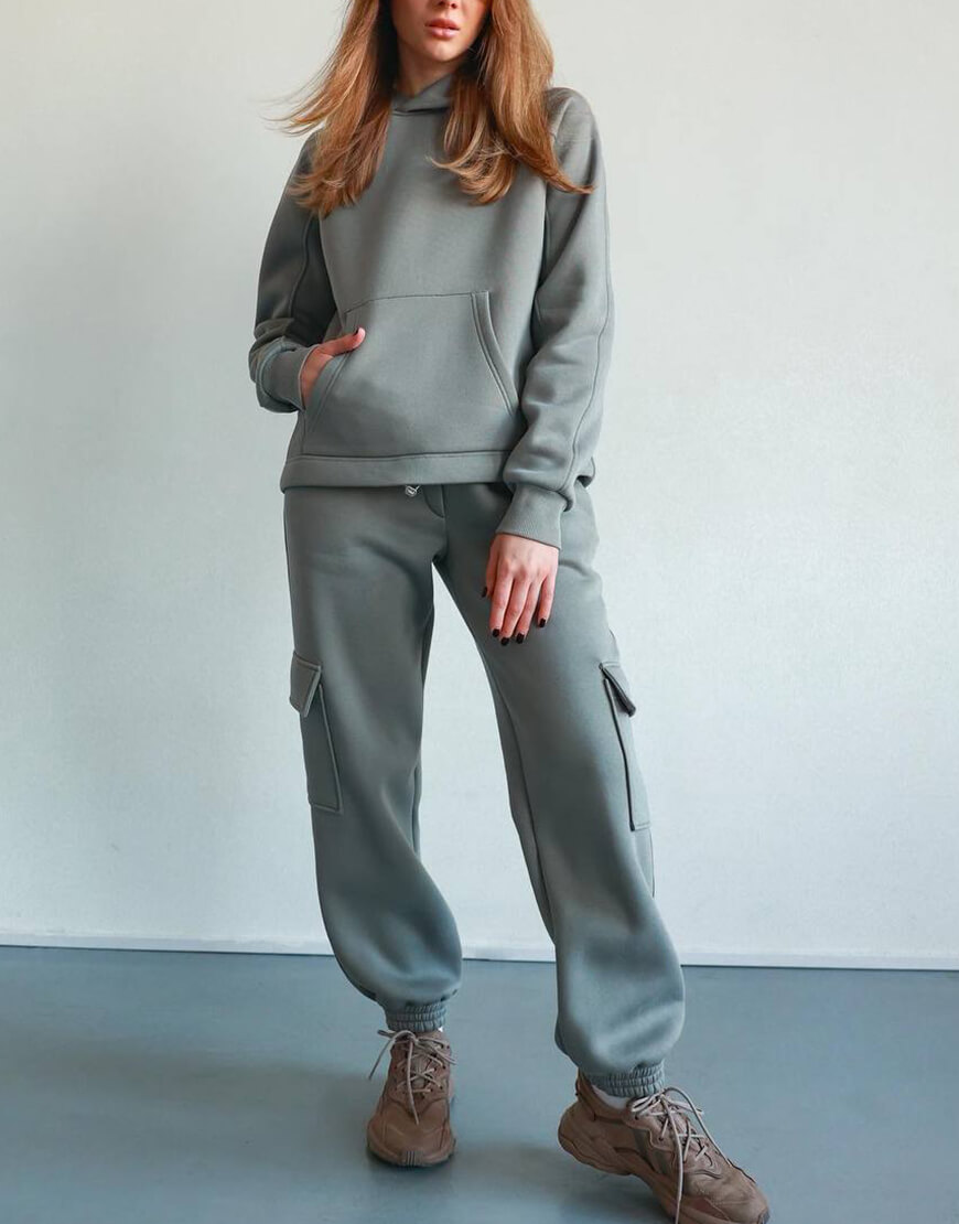 Теплий костюм з приємної до тіла танини, ідеально підходить для прохолодної погоди. Він виготовлений з якісного матеріалу, що забезпечує комфорт і дозволяє шкірі дихати. М’яка тканина та продуманий крій гарантують свободу рухів, а місткі кишені на штанах та худі роблять його ще зручнішим та універсальним.