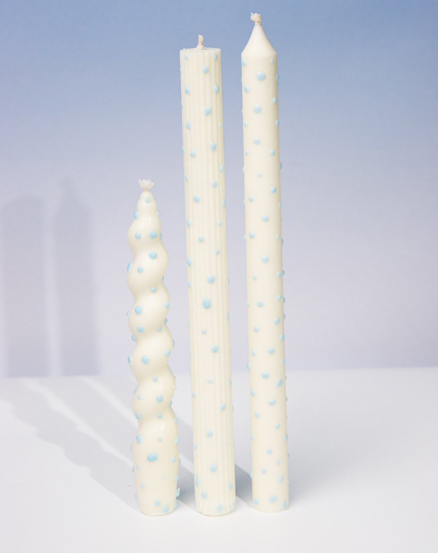Набір свічок білі в блакитну крапку