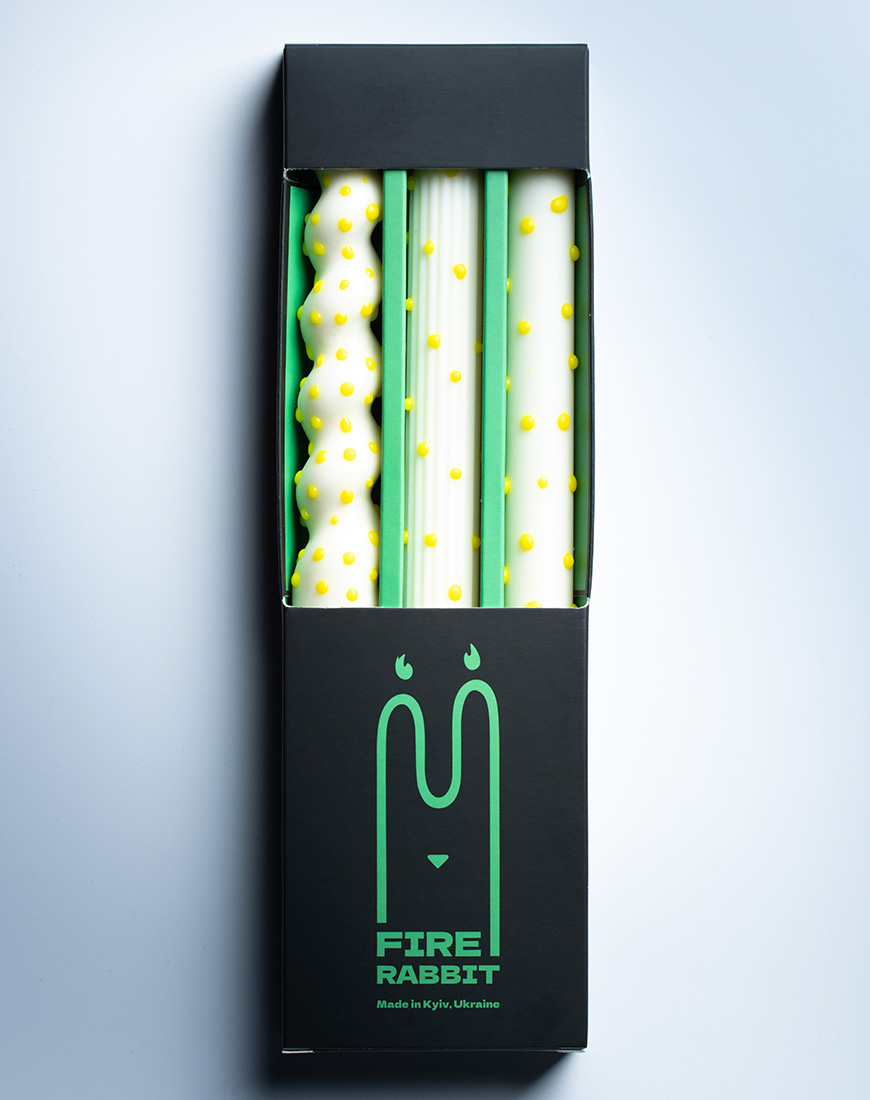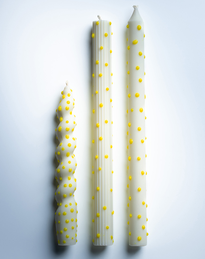 Набір свічок білі в жовту крапку