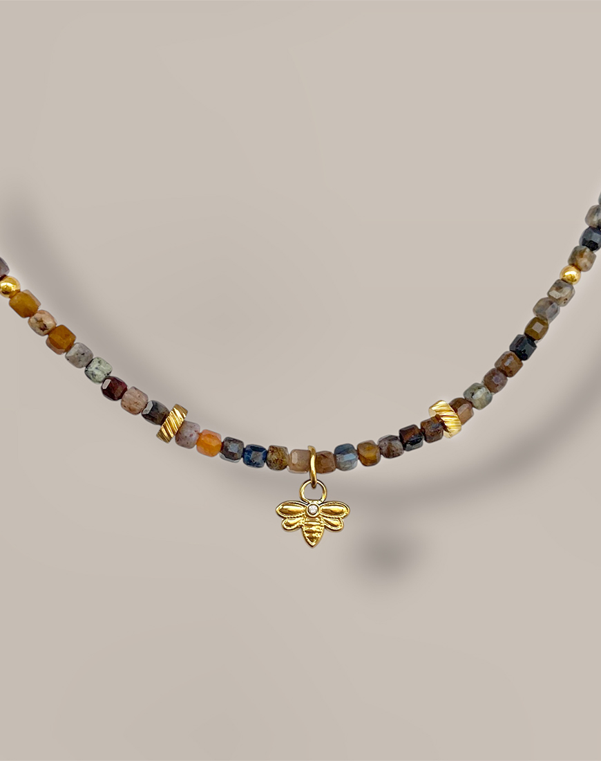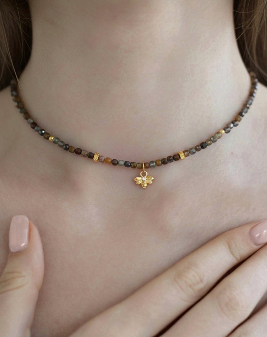 Доставка впродовж 2-5 робочих днівНамисто з натурального каміння і позолоченою бджілкою