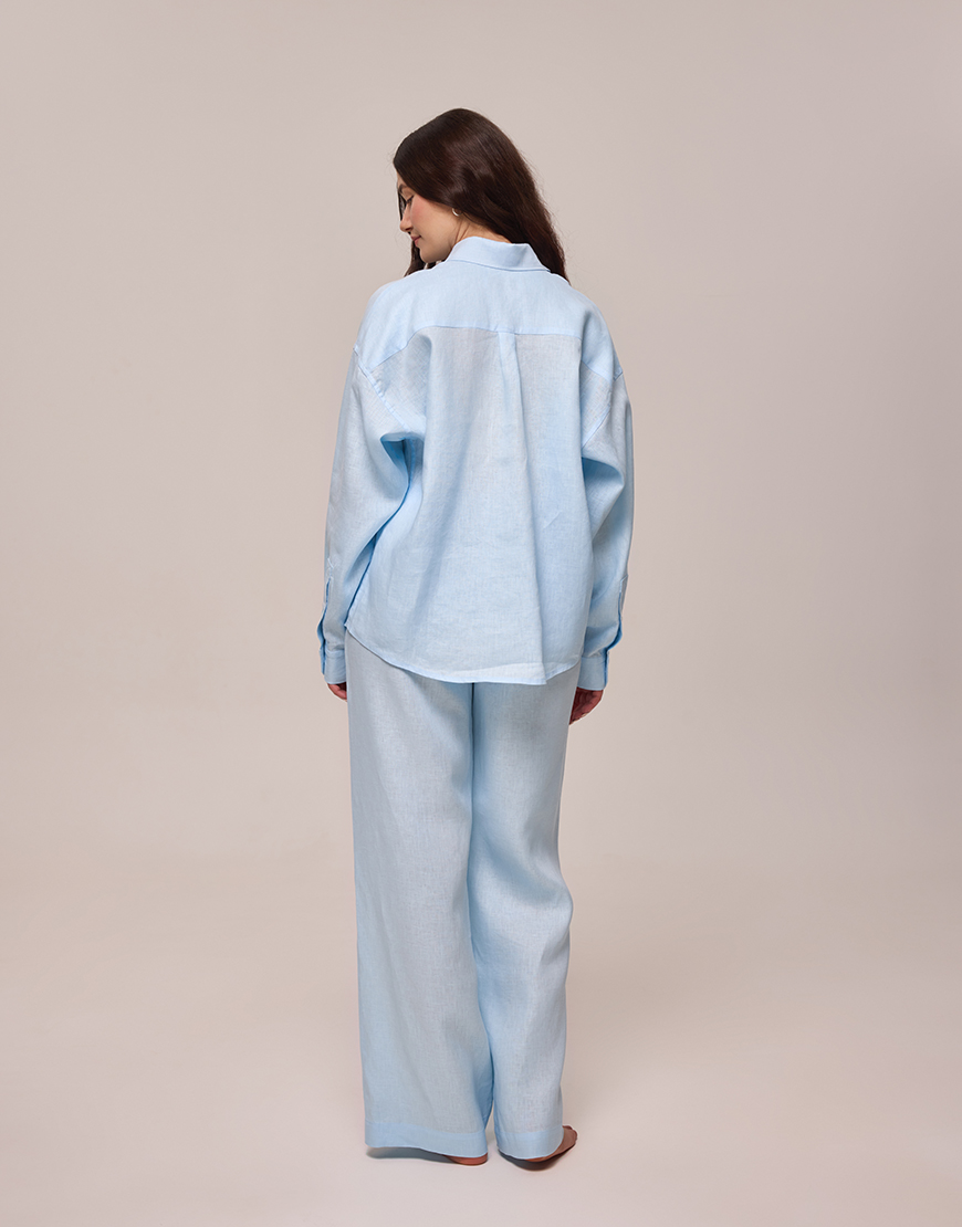 Наші лляні штани мають зручний еластичний пояс на шнурку, дві глибокі кишені в бокових швах та пришивну кишеню на задній частині штанів з правої сторони.