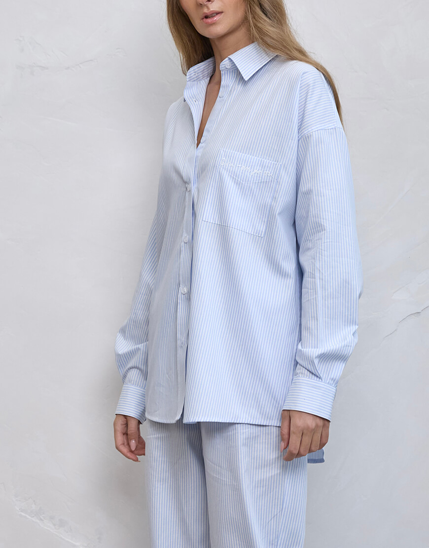 Доставка протягом 2-10 робочих днівПіжамна сорочка вільного крою розроблена за принципом класичної чоловічої сорочки. Має планку на ґудзиках та накладну нагрудну кишеню з вишивкою «Дім там, де ти».