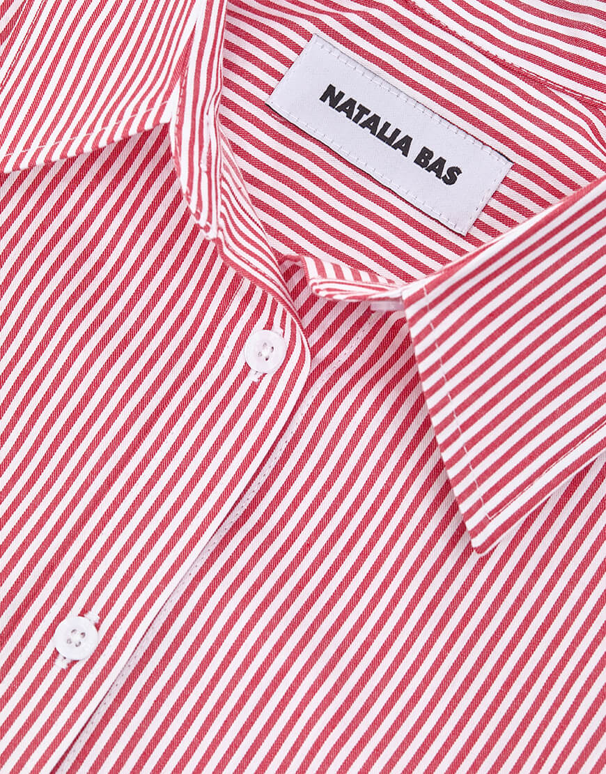 Сорочка з довгим рукавом в червону смужку