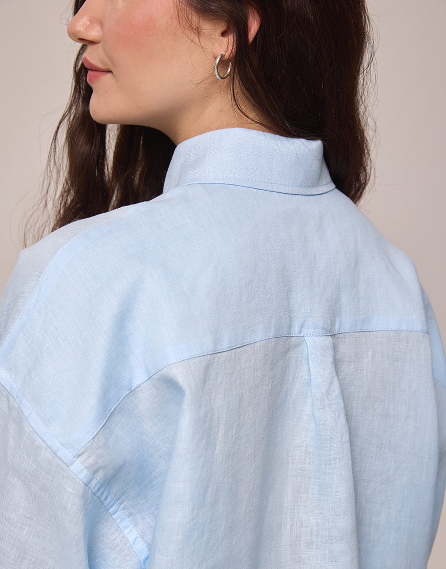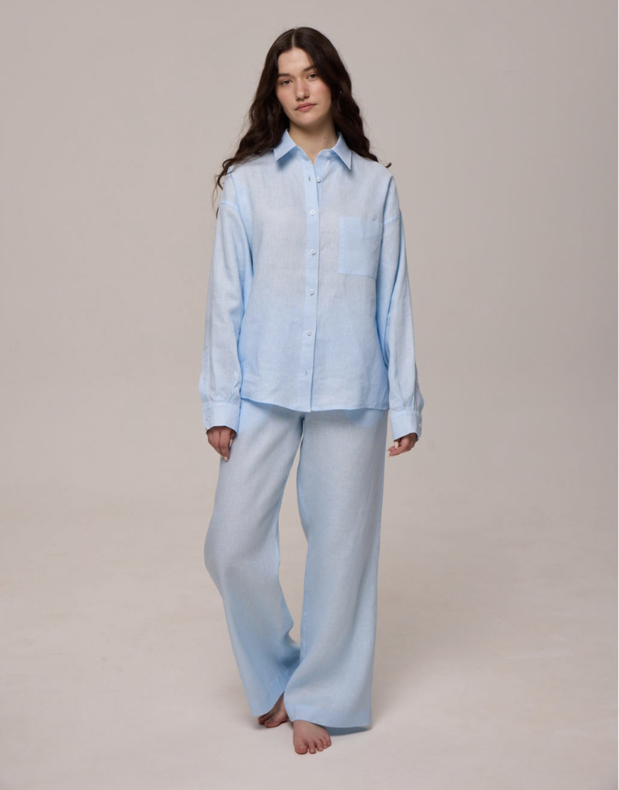 Лляна сорочка вільного крою розроблена за принципом класичної чоловічої сорочки. Спеціально створена для комфортного перебування в ній протягом дня та ночі. Має планку на ґудзиках та накладну нагрудну кишеню.