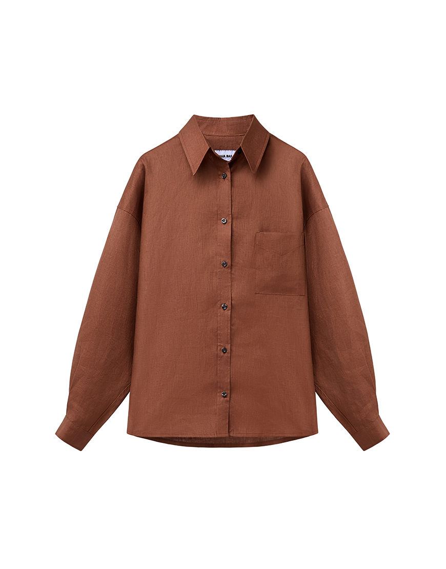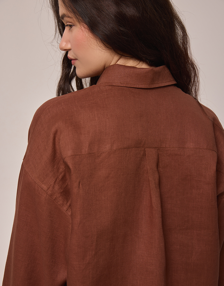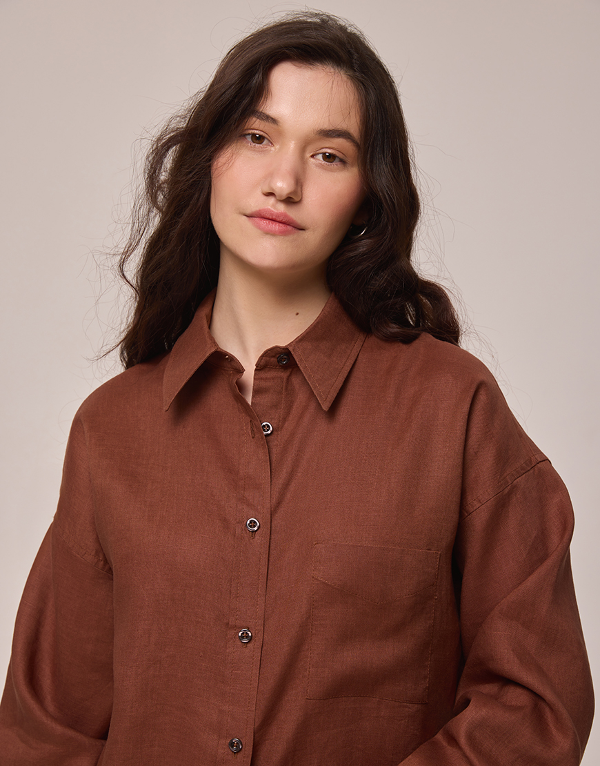 Лляна сорочка з довгим рукавом коричнева