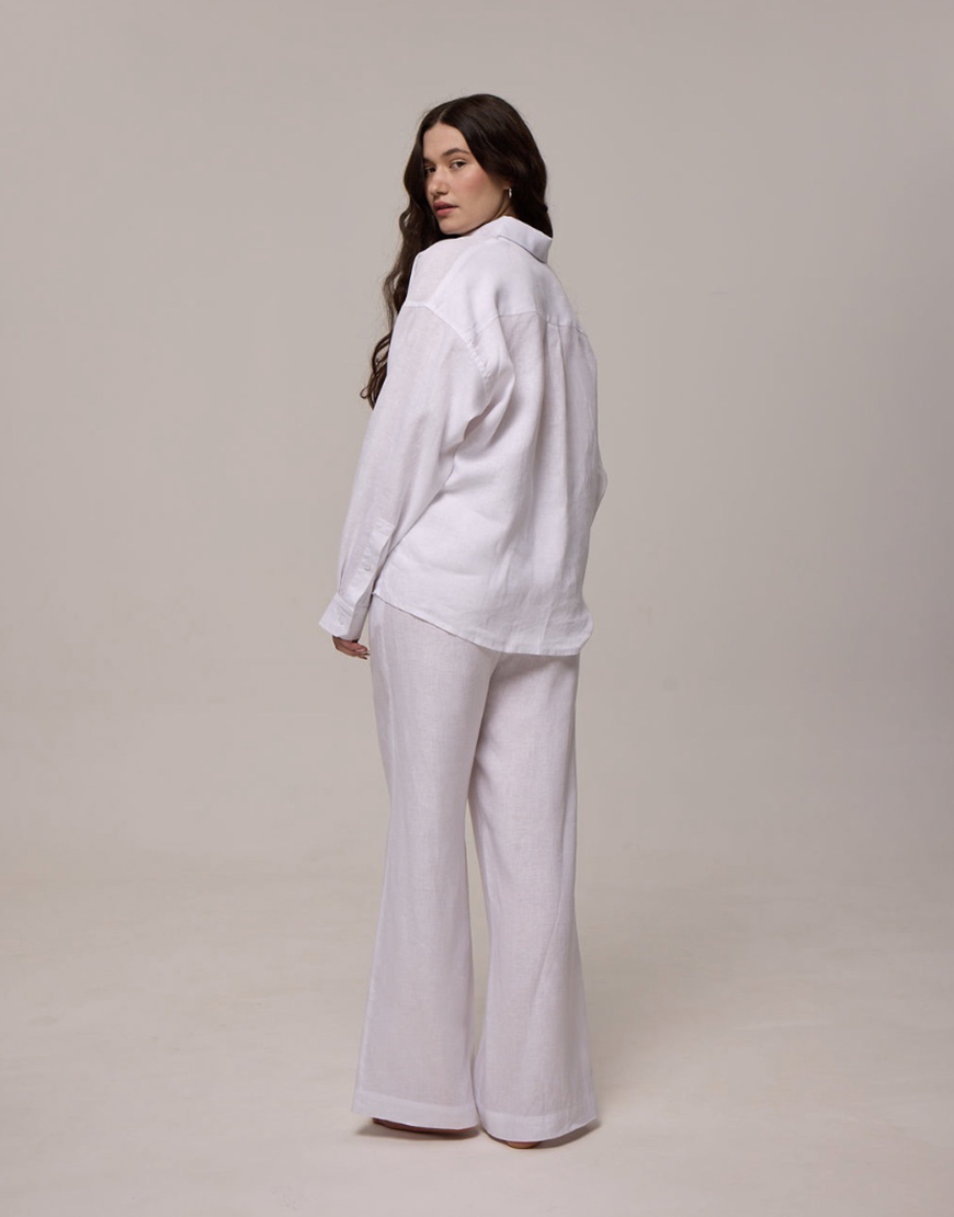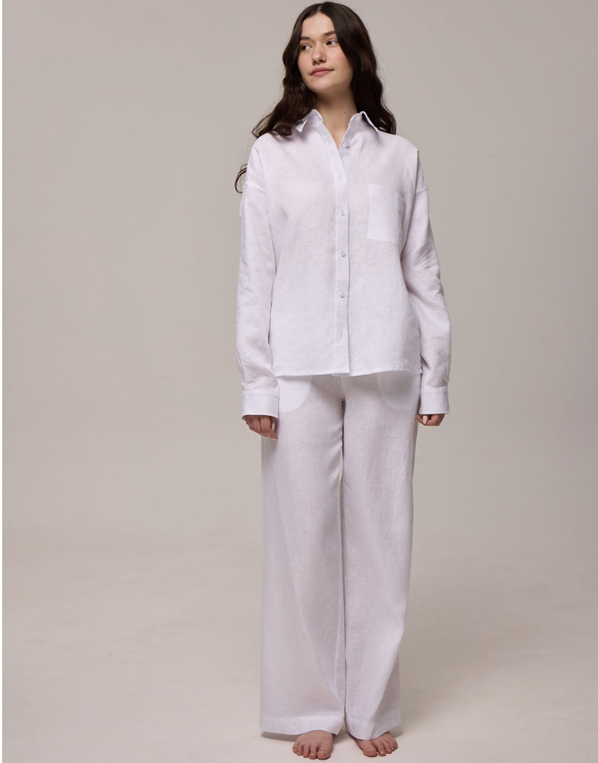 Лляна сорочка вільного крою розроблена за принципом класичної чоловічої сорочки. Спеціально створена для комфортного перебування в ній протягом дня та ночі. Має планку на ґудзиках та накладну нагрудну кишеню.