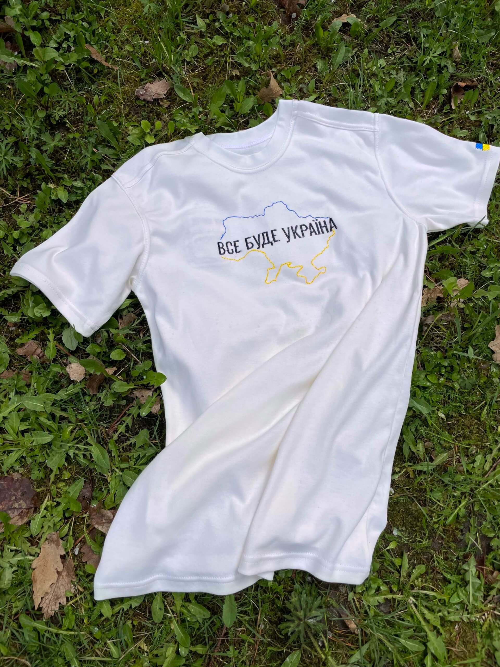 Бавовняна футболка вільного крою з патріотичною тематикою.