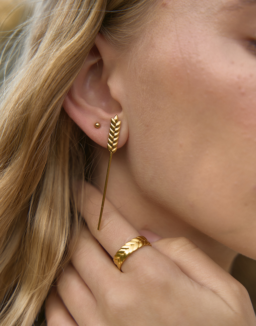 Склад: Виготовлена зі срібла з позолотою. В комплекті монокульчик-колос і кульчик-кулька