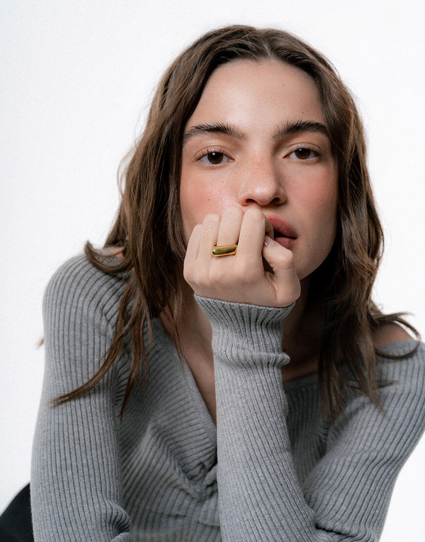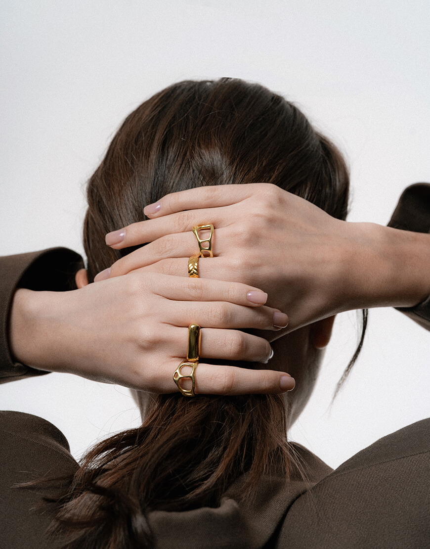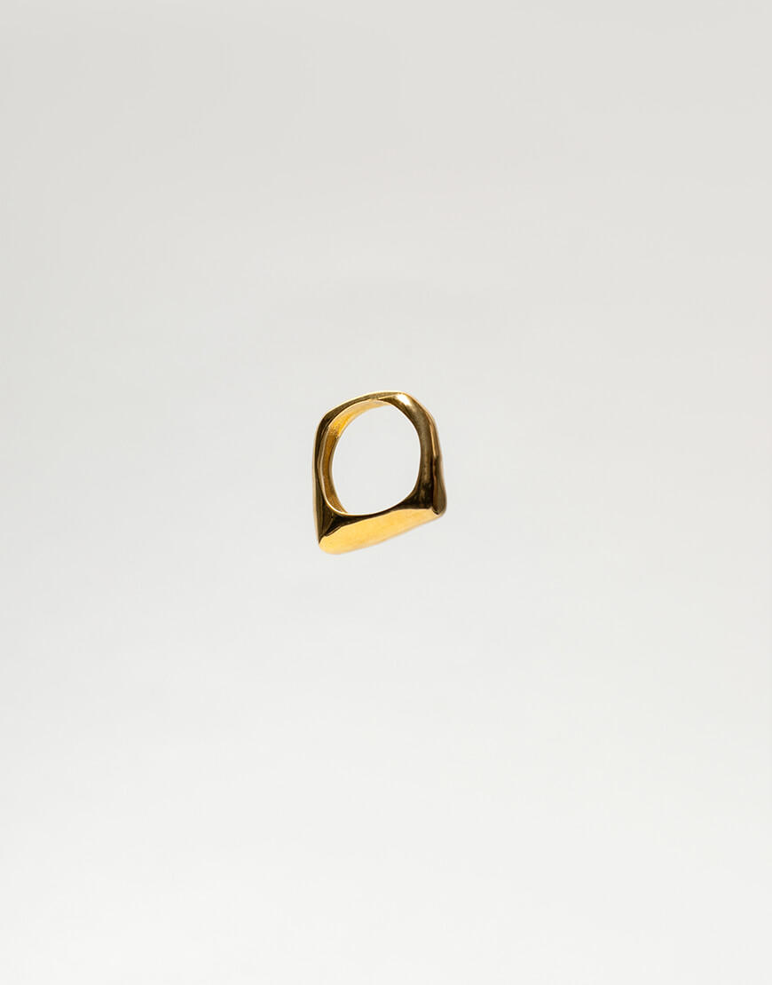Доставка впродовж 10-15 робочих днівАсиметрична каблучка зроблена зі срібла з позолотою. Можна носити в трьох положеннях. Має 3 розміри на вибір.