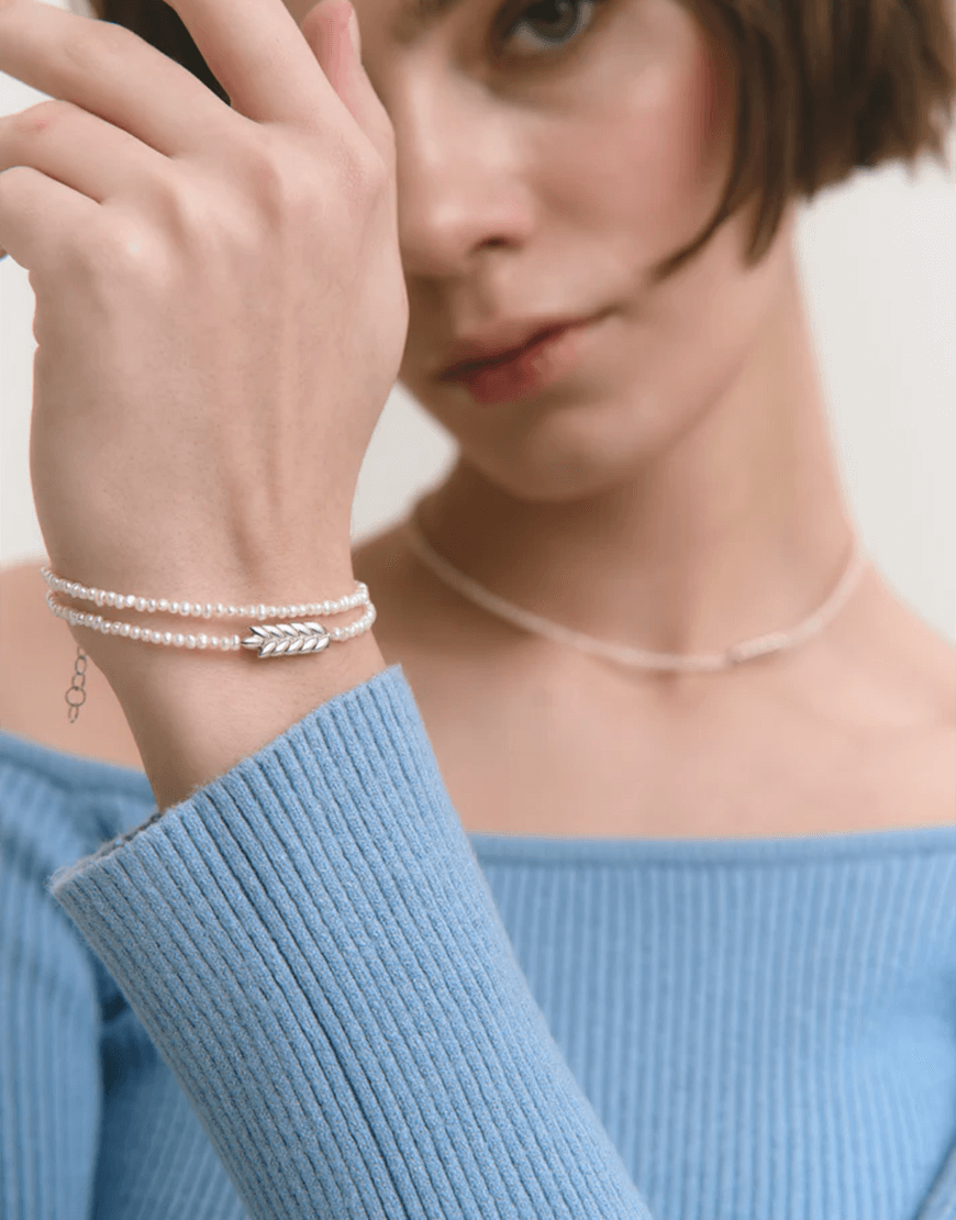 Доставка впродовж 2-5 робочих днівБраслет з кулоном і ланцюжком з натуральних перлів.
