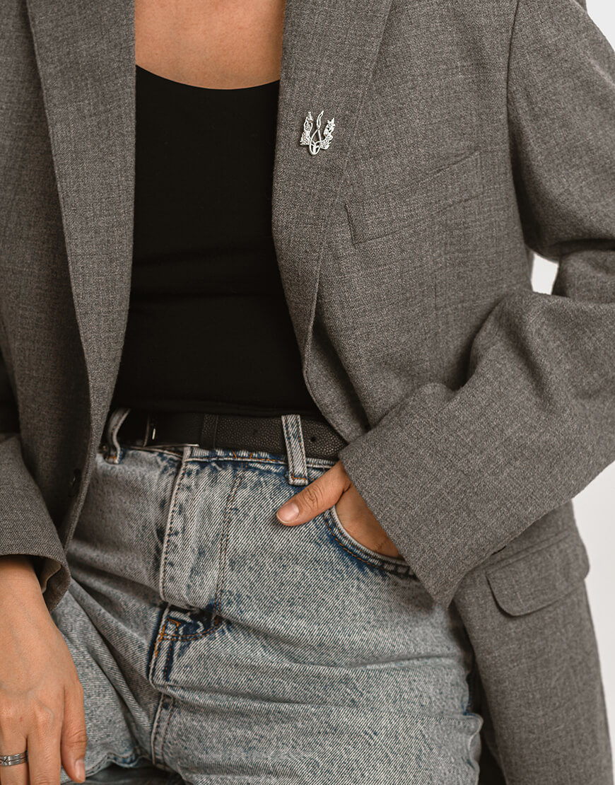 Брошка зроблена зі срібла з родієвим покриттям.