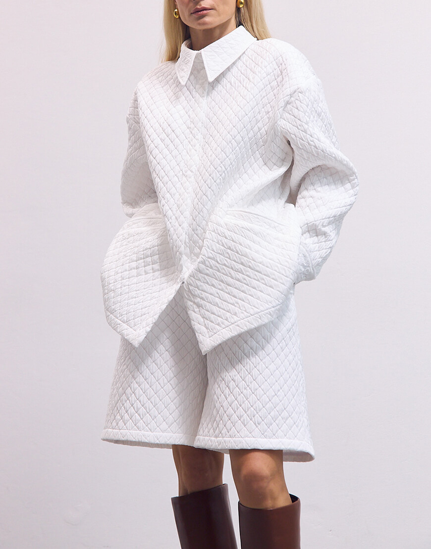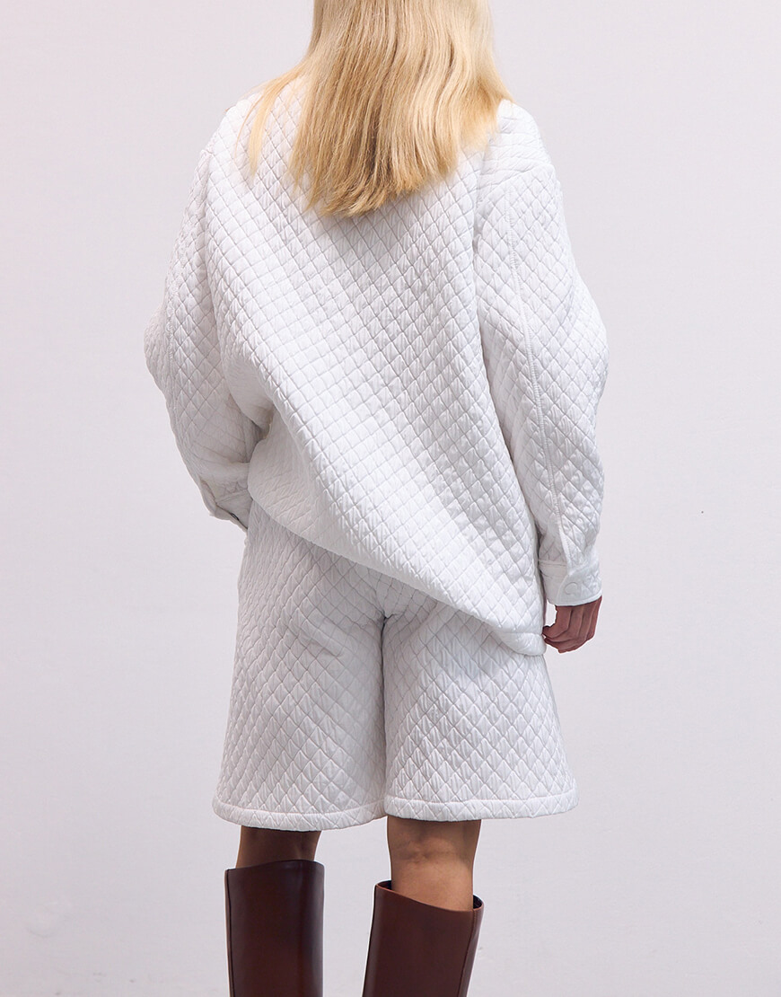 Шорти розширеного до низу силуету . По талії в середині виробу є резинка . Застібка з переду на потайний замок.