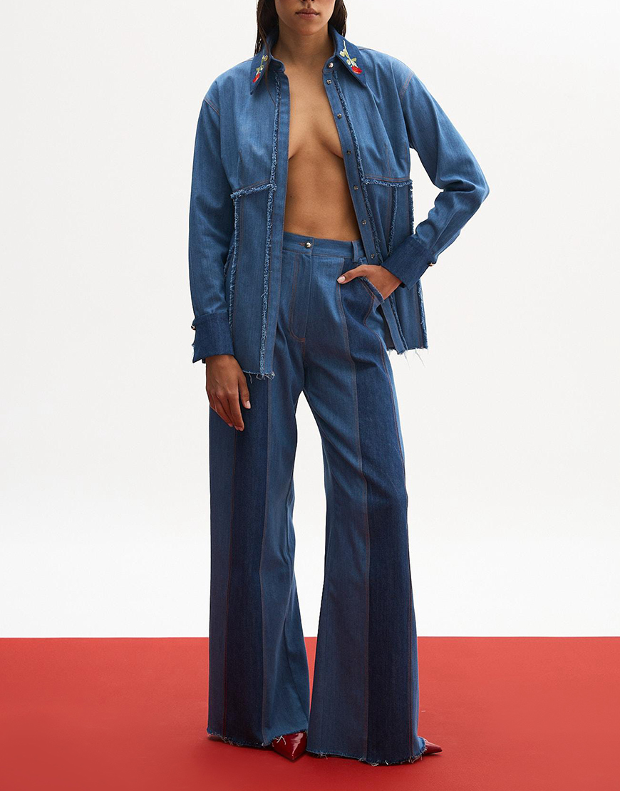 Джинси силует палаццо. Виконані з двох видів деніму .