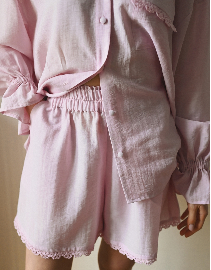 Легкі шорти вільного крою з м’якої тканини. Забезпечують комфорт та свободу рухів завдяки зручній посадці. Декоративна ажурна обробка по краю додає витонченості, роблячи модель універсальною для повсякденних образів або домашнього відпочинку. Легко комбінуються з сорочками, футболками та топами.Представлені в трьох кольорах, що дозволяє обрати ідеальний варіант для будь-якого стилю.