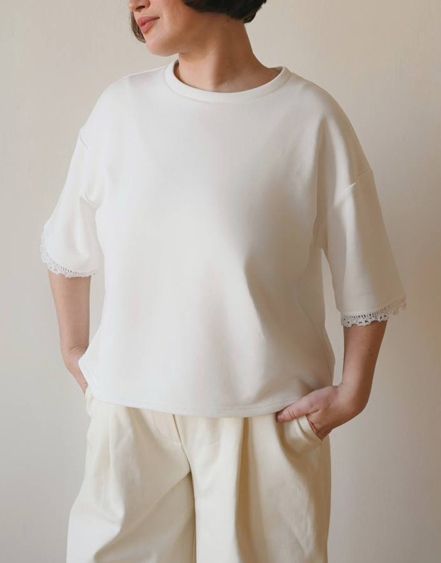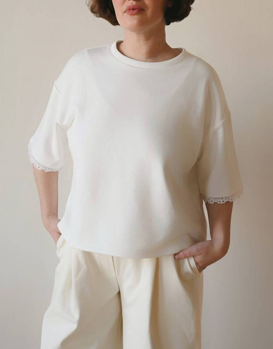 Доставка протягом 2-10 робочих днівБіла вкорочена футболка вільного крою — базова модель з ніжним акцентом. Виконана з приємної до тіла бавовни, вона забезпечує комфорт упродовж дня. Широкі рукави додають легкості силуету, а витончене мереживо по краях надає виробу ніжності та вишуканості. Завдяки універсальному дизайну футболка легко поєднується зі спідницями, брюками або шортами, створюючи гармонійні образи.