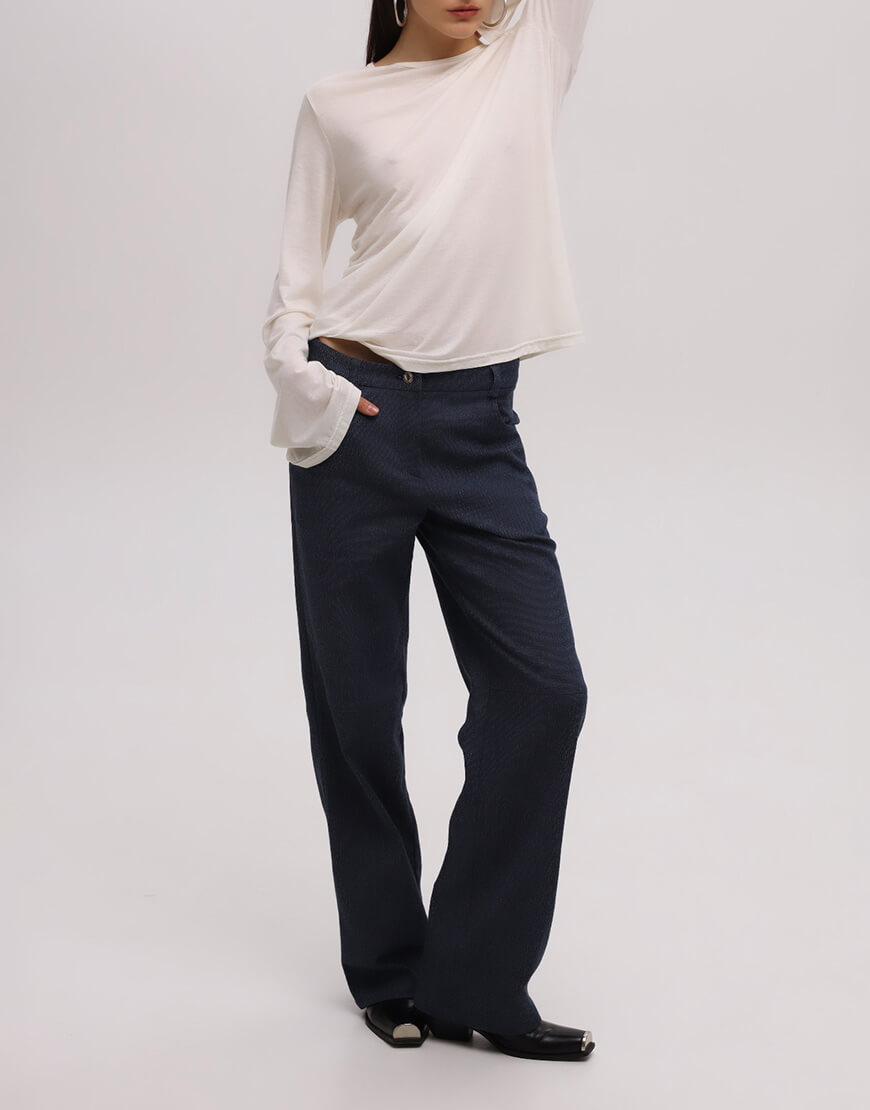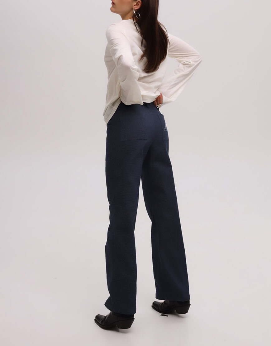 Джинси прямого крою з боковими кишенями та кишенями по заду виробу з вишивка Famme fatale
