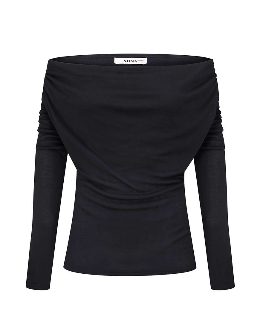 Чорний лонгслів з можливістю носити як на плечах так і закритим матеріал не просвічуєтся та має дуже приємні тактильні відчуття
