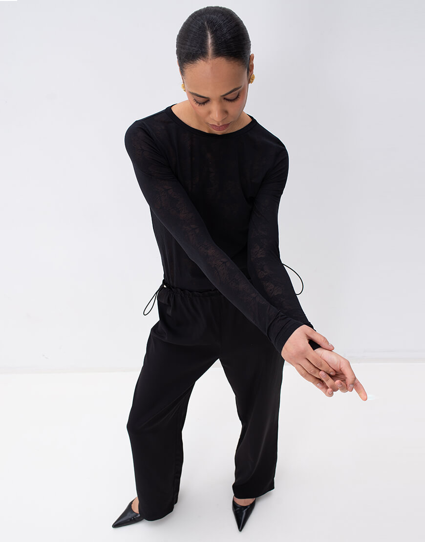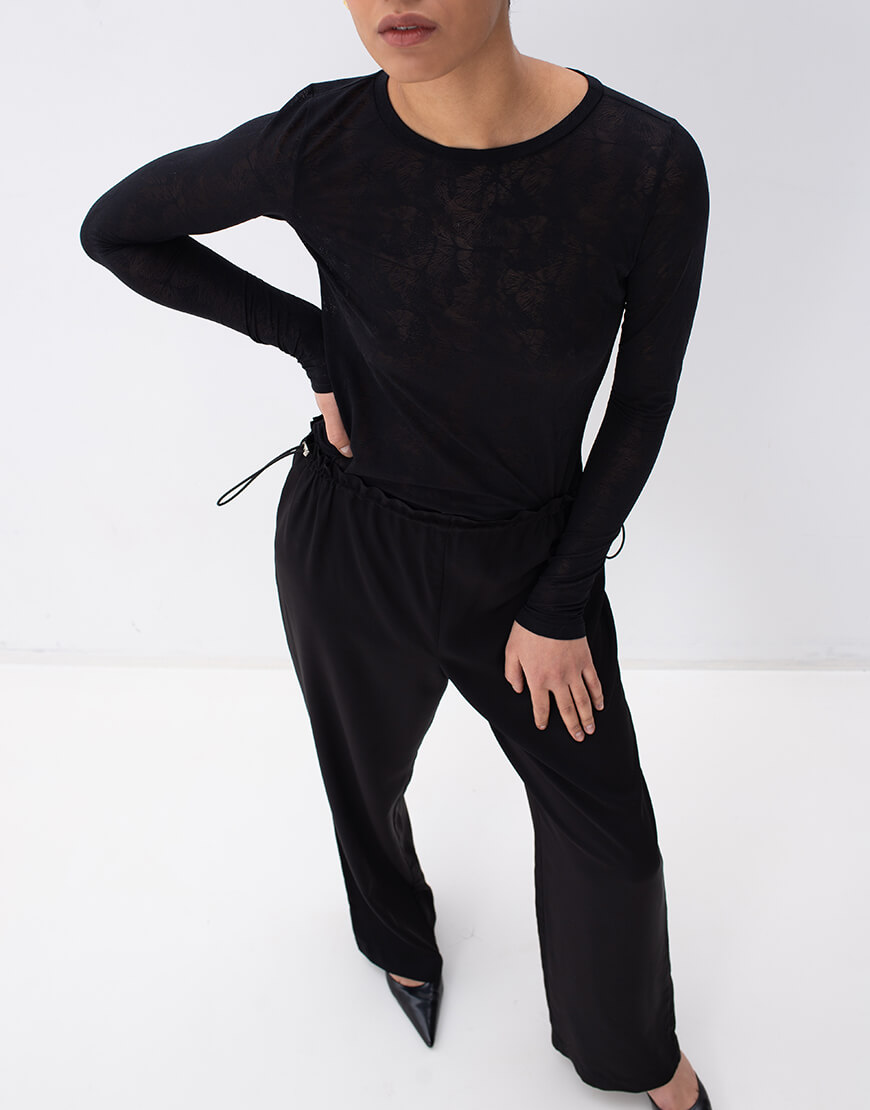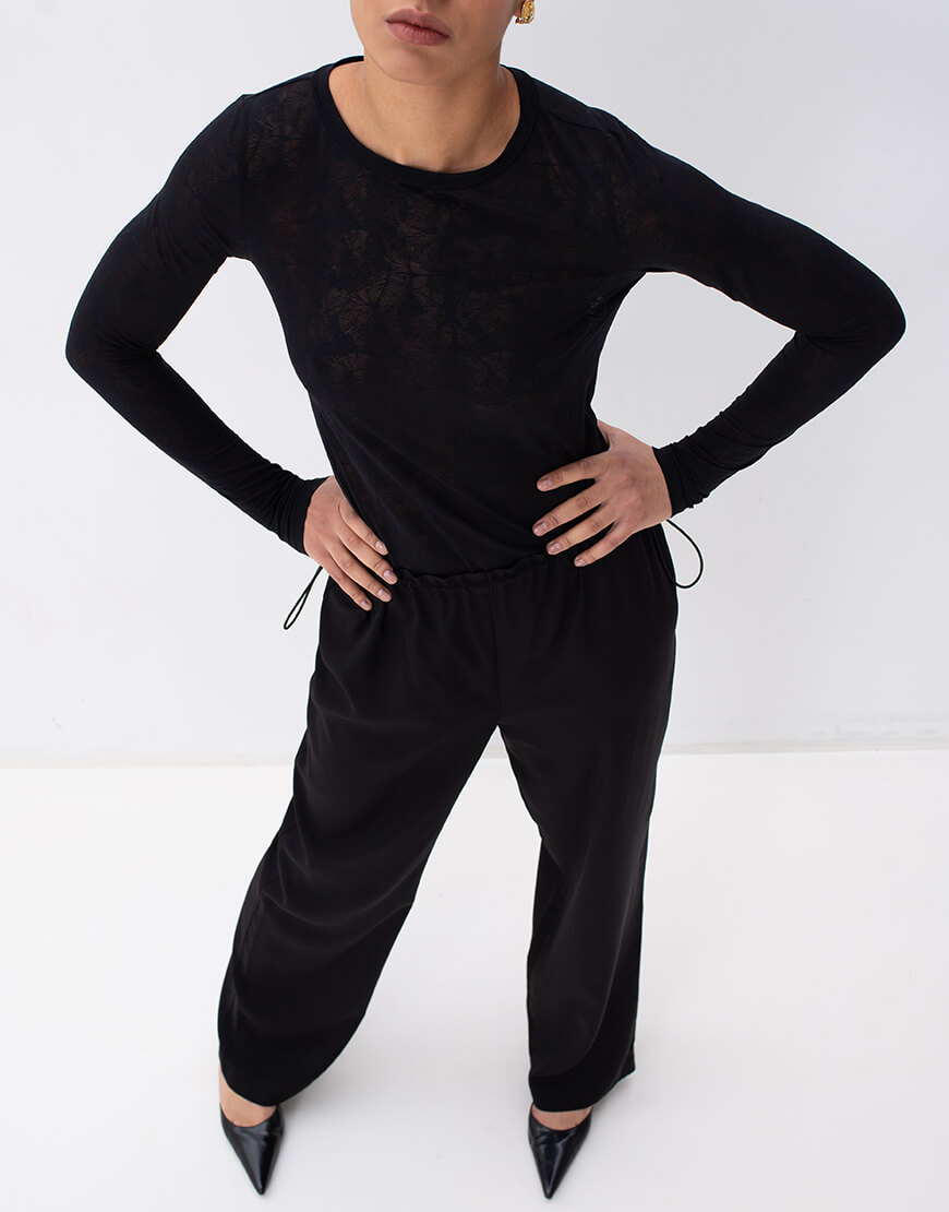 Базовий лонгслів з чорноі полупрозороі тканини, матеріал виробу стрейчевий