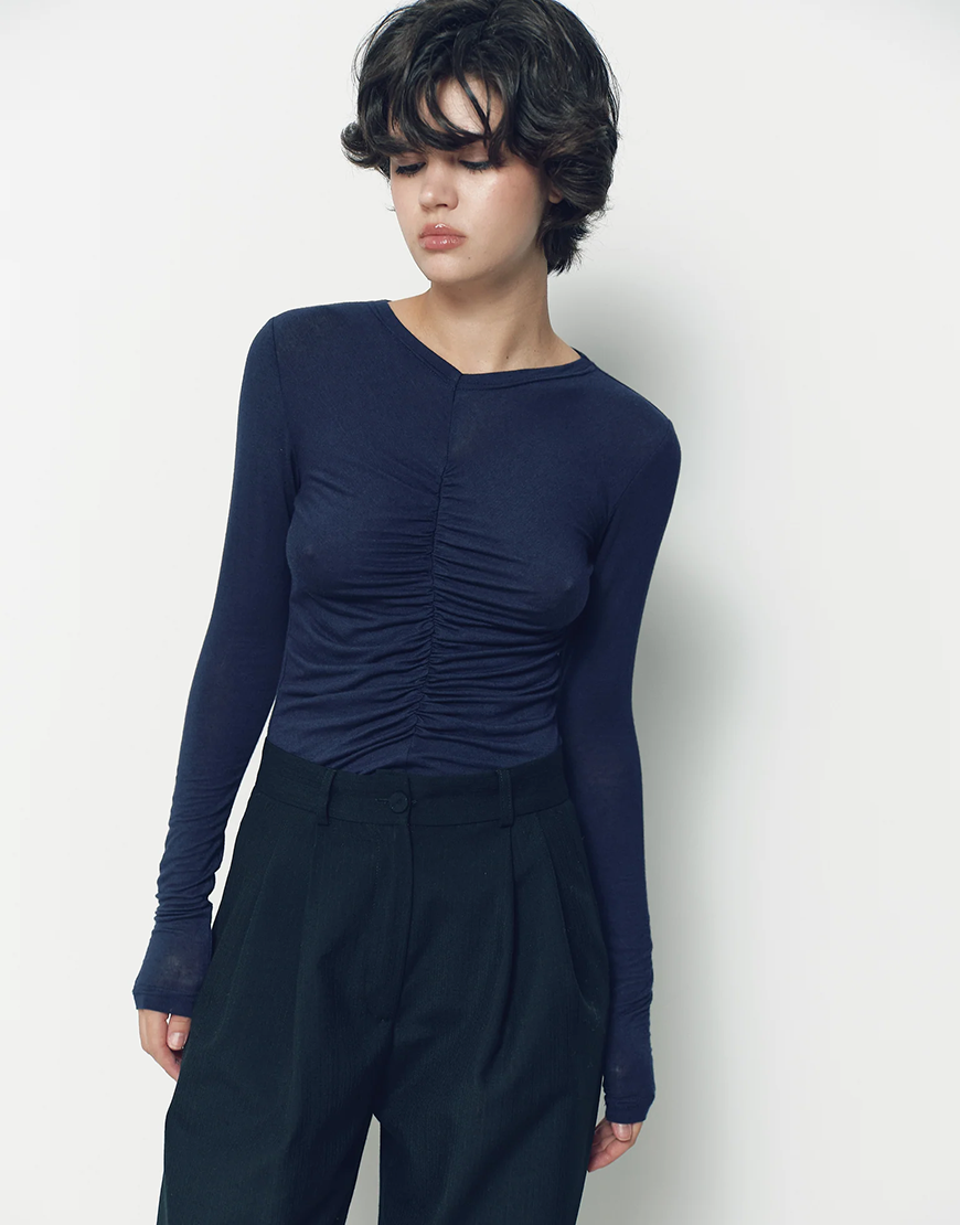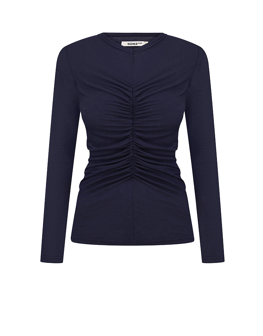 Лонгслів з драпіруванням синій