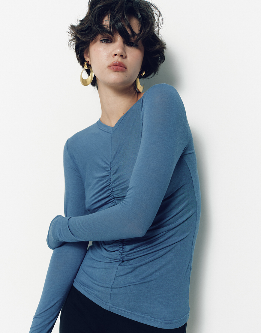 Лонгслів з драпіруванням джинс