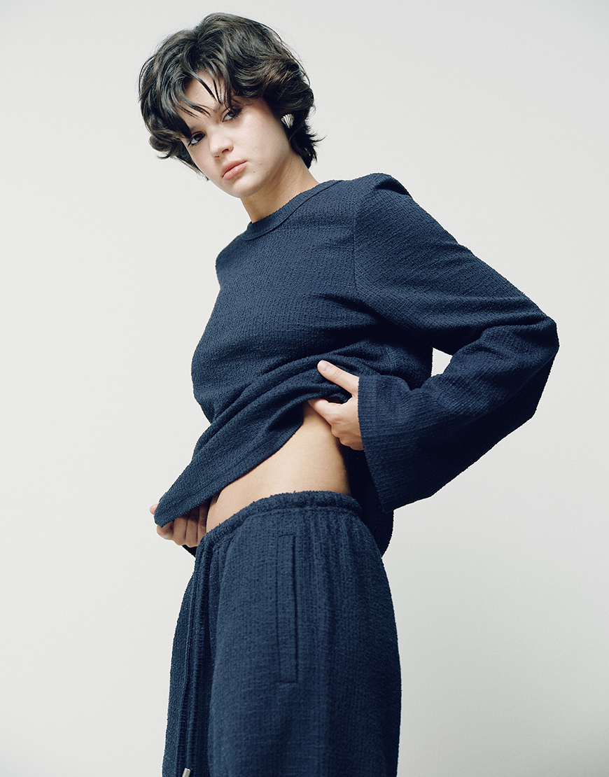 Базова річ синього кольору, оверсайз крою з подовженим рукавом
