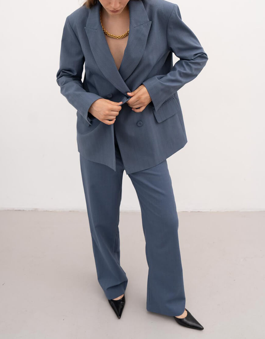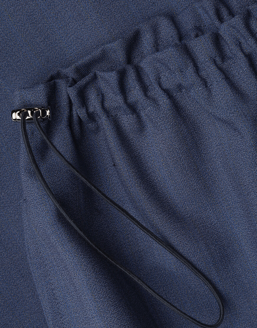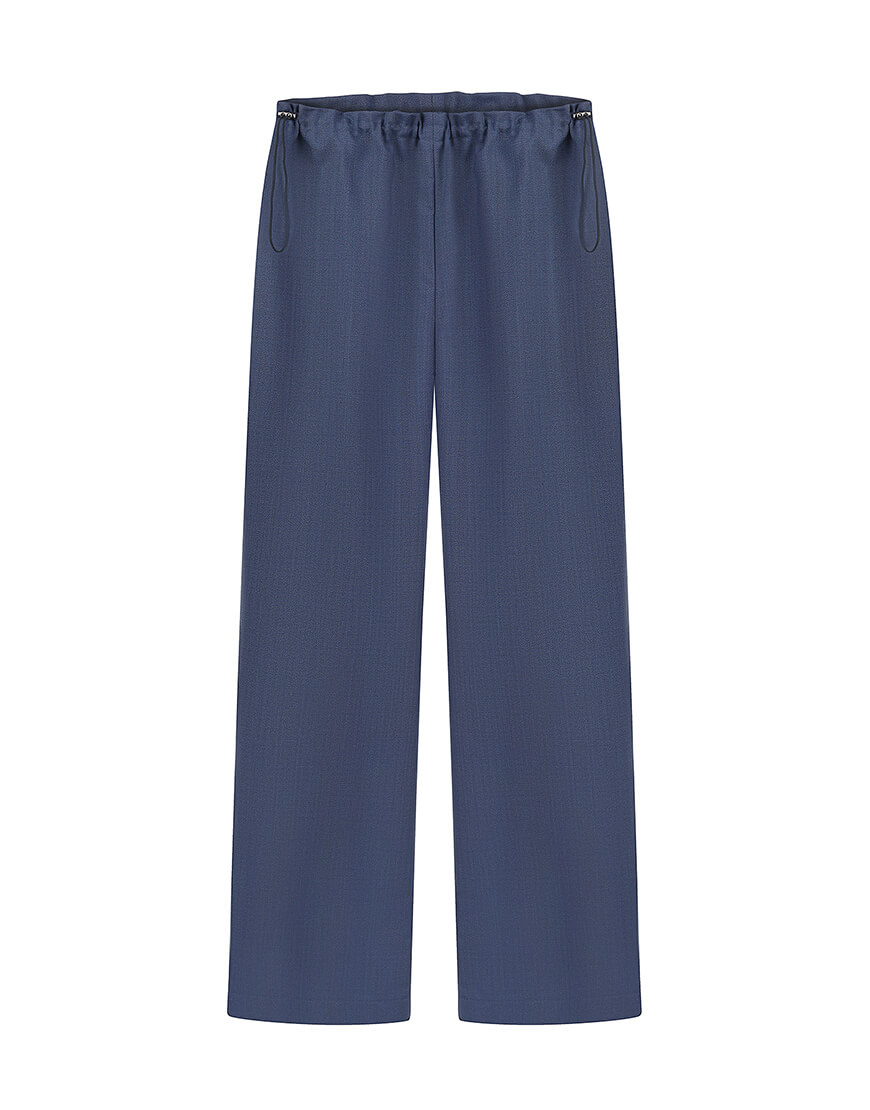 Брюки прямого крою на резинці регулюються за допомогою фіксаторів з обох боків, вовна оригінального джинсового кольору