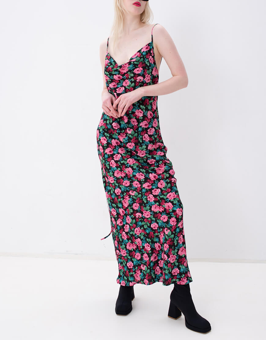 Сукня-комбінація в красивий принт – яскраві троянди, фіксуєтся зав’язками на спині та металевими кільцями