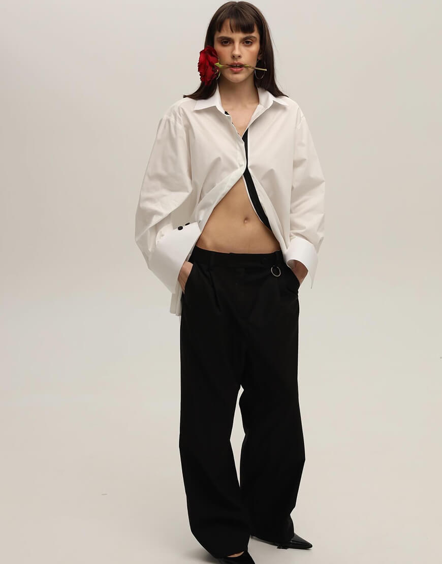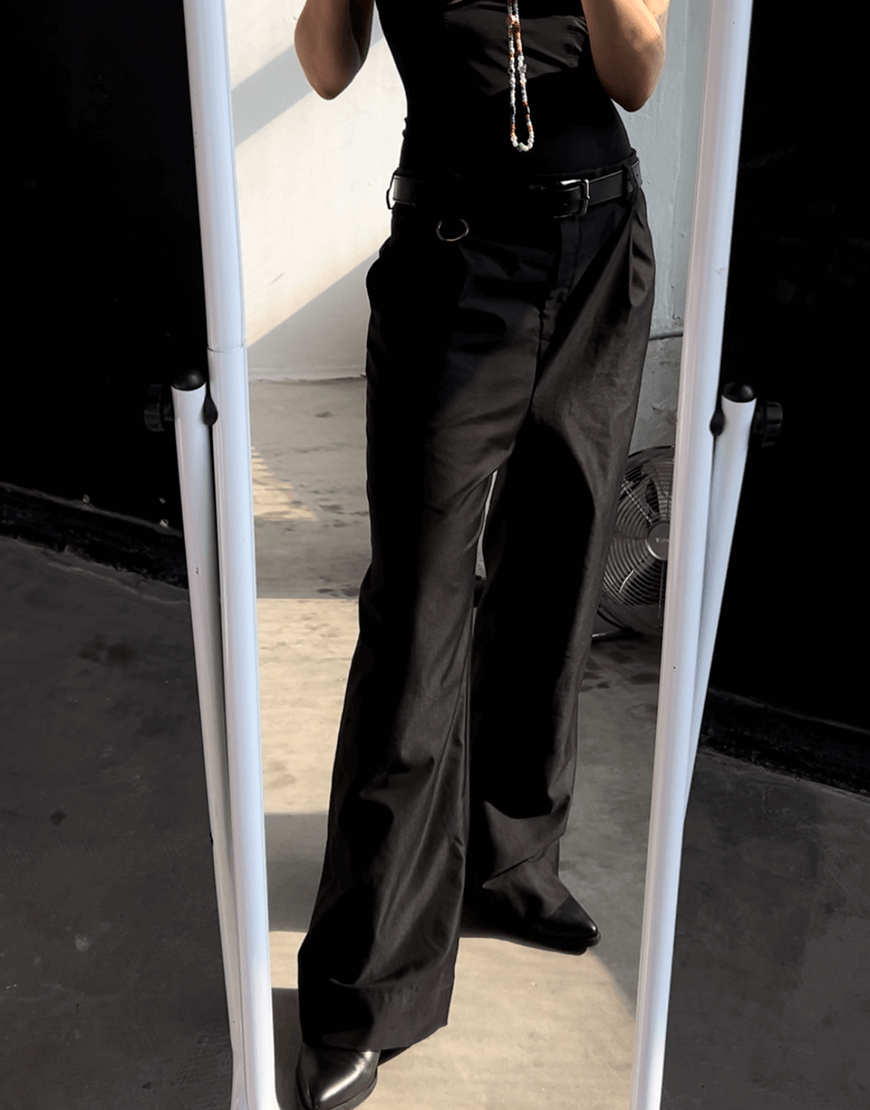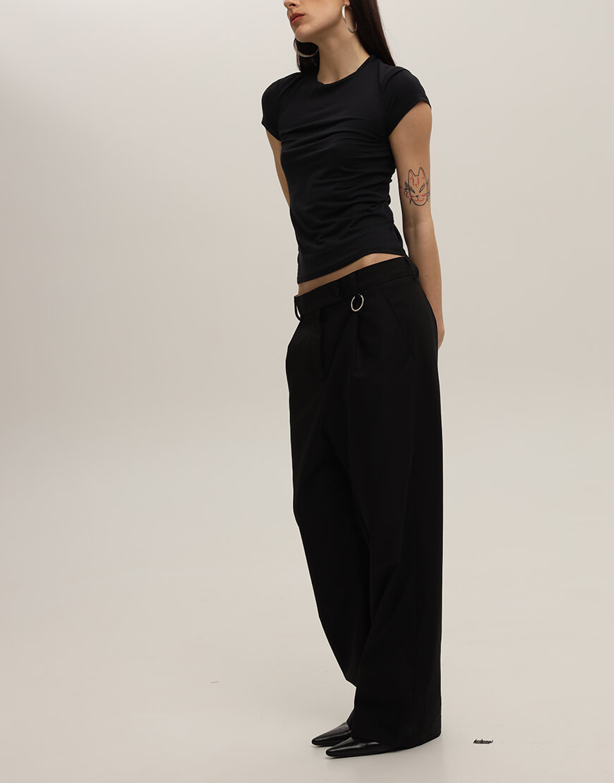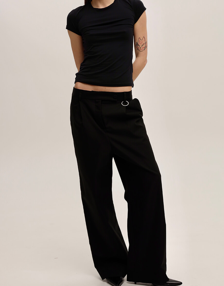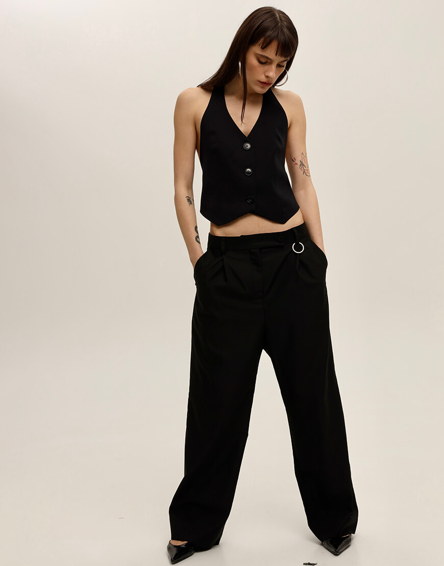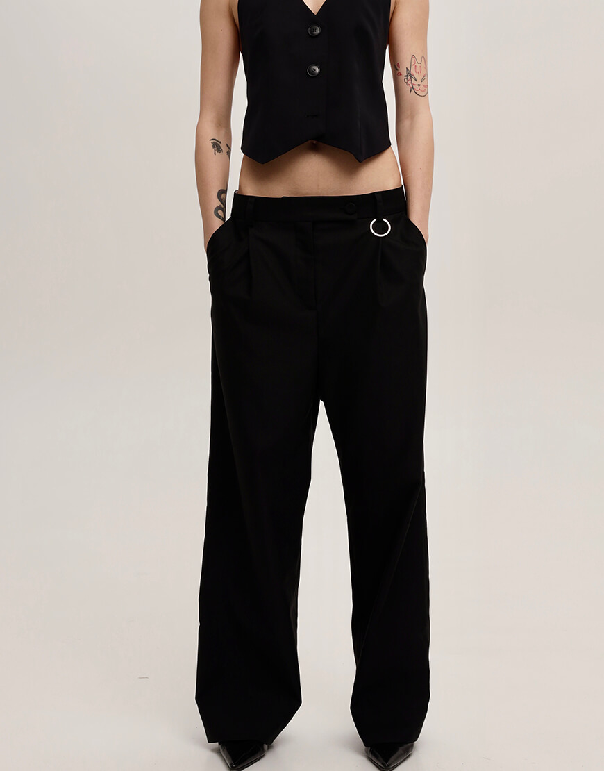 Доставка впродовж 2-14 робочих днівЧорні брюки з заниженою посадкою з боковими кишенями та металевим декором