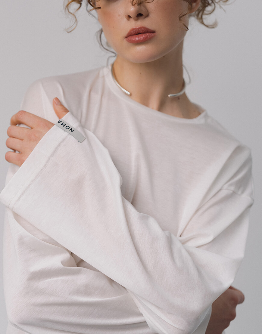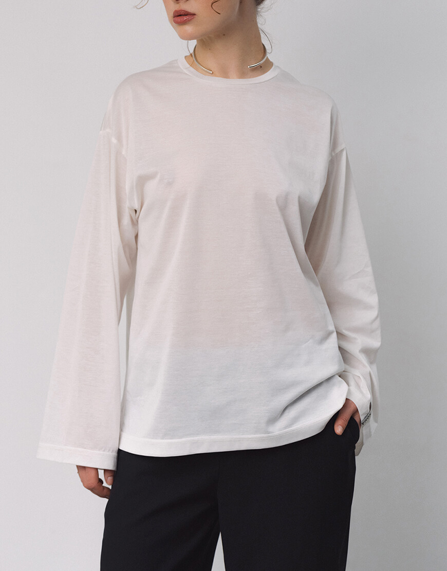 білий оверсайз лонгслів з широкими рукавами круглим горлом тканина тонка має легку прозорість