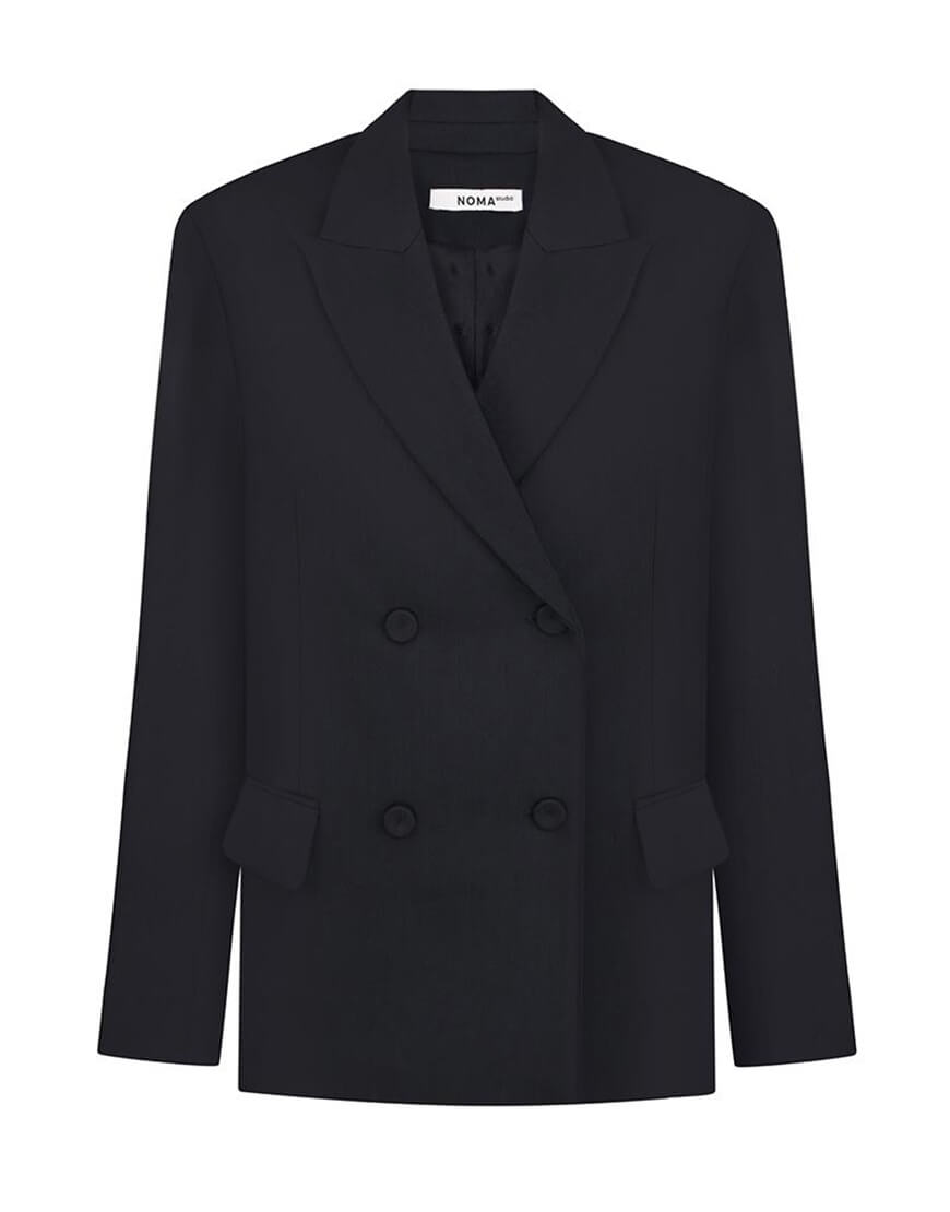 Чорний жакет оверсайз з фактурної костюмної вовни.