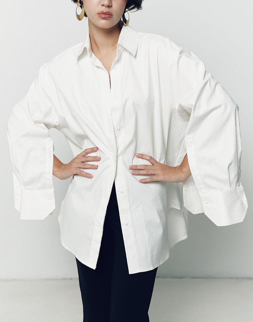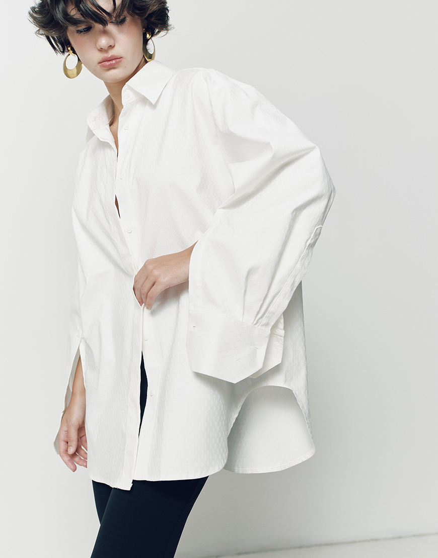Доставка впродовж 2-5 робочих днівбіла сорока з подвійними застібкамии на манжетах вільного крою з ткании що добре тримає форму