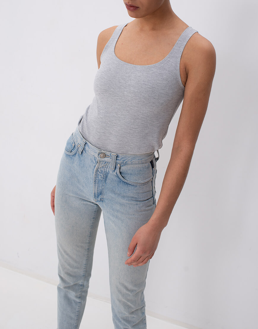 Базова майка з цупкоі тканини сірого кольору, приємна до тіла, з красивими лініями по фігурі