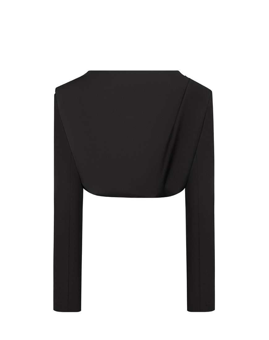 Доставка впродовж 2-5 робочих днівЧорний топ із драпіруванням, що втілює невимушену елегантність. М’які лінії, акцентовані плечі та легка гра текстур створюють образ, сповнений впевненості й витонченості. Ідеальний вибір для вечірніх виходів або як акцент у мінімалістичному гардеробі.